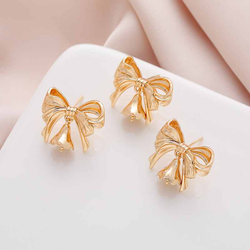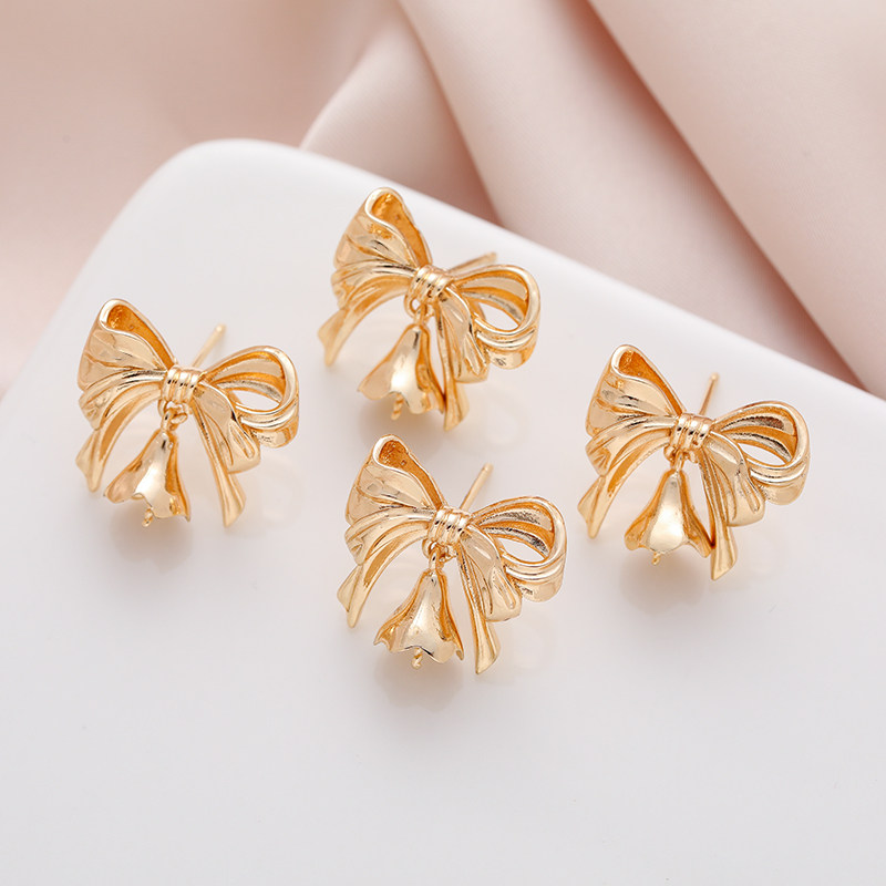 Позолоченные большие серьги с бантиком, аксессуары из жемчуга, 14 карат, золотой цвет, DIY
