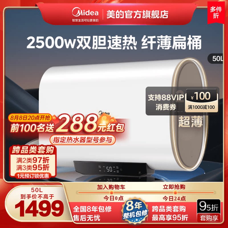 Midea Flat Barrel Электрический водонагреватель BT1 Pro Ultra -Thin без встречи с водоснабжением Умный дом.