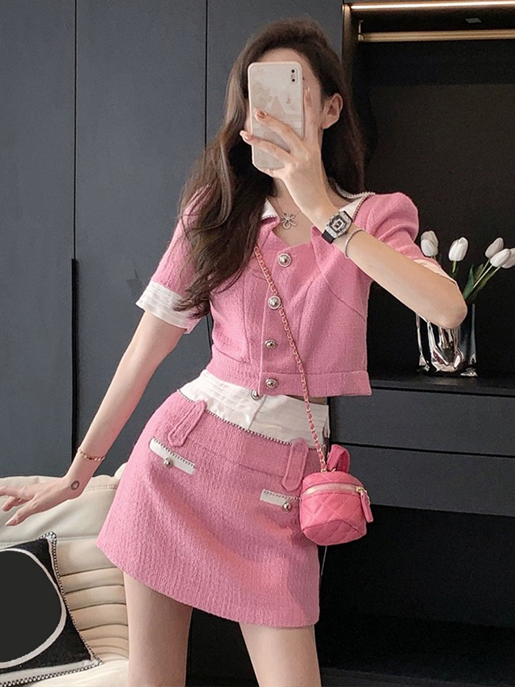 Летняя милая короткая юбка, комплект, подходит для подростков, в западном стиле