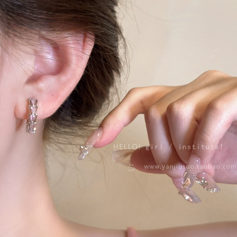 Изысканные розовые дизайнерские серьги с цирконом, легкий роскошный стиль, тренд сезона, яркий броский стиль