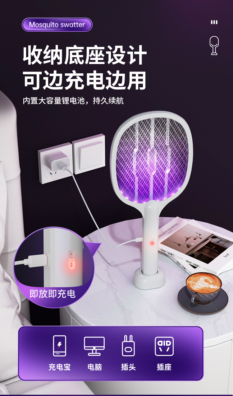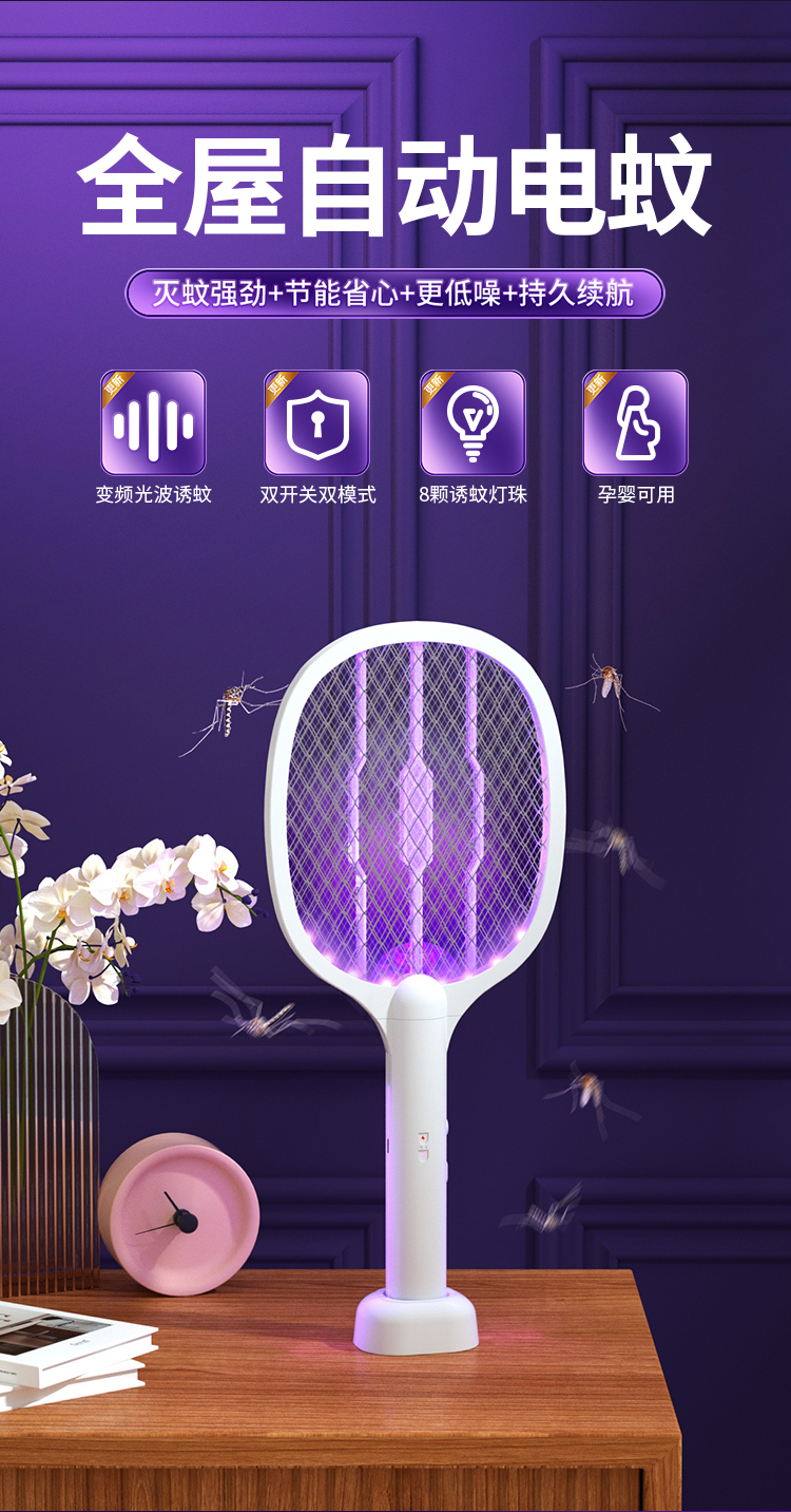 Перезаряжаемая электрическая мухобойка от комаров с зарядкой, мощное средство от комаров для домашнего использования, автоматическая ловушка для комаров, москитная лампа