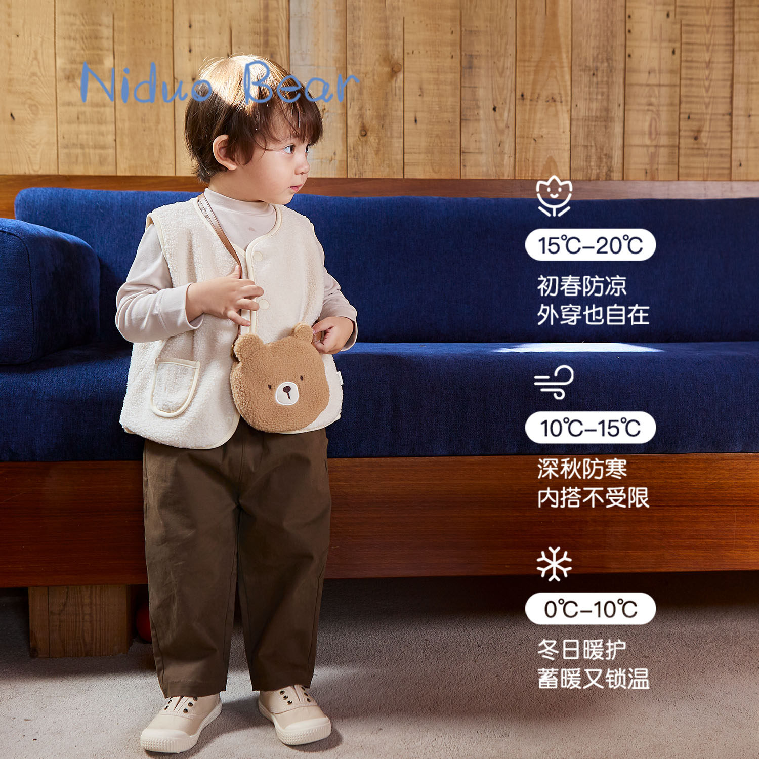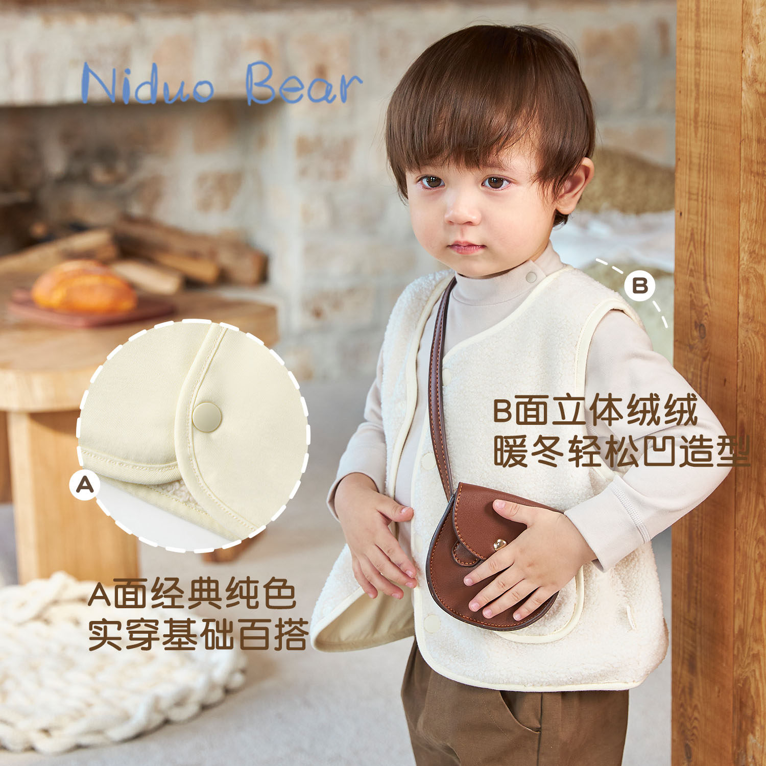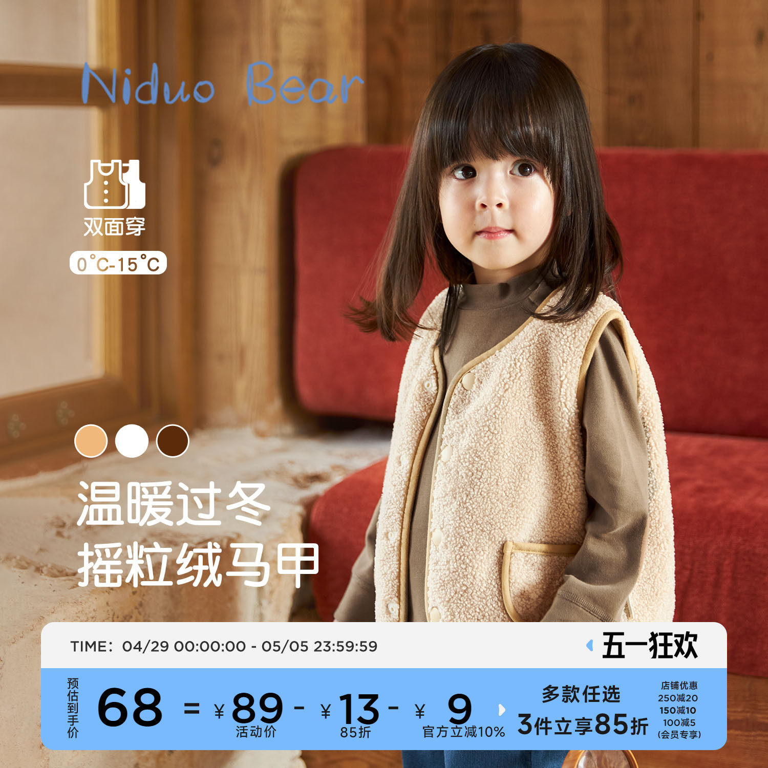 尼多熊 Демисезонный детский утепленный жилет подходит для мужчин и женщин, бархатный слинг для девочек