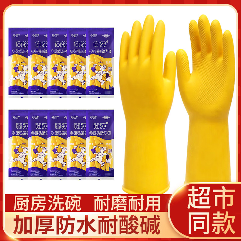 [История китайской продукции] 10 пар ~ Наньянские латексные перчатки из говяжьего сухожилия, утолщенные резиновые перчатки, защита труда, прочные, водонепроницаемые, для мытья посуды