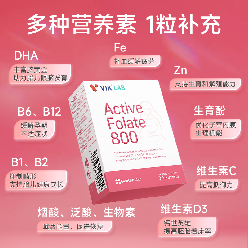 Четвертая генерация супер активная фолиевая кислота Vik Lab Беременная женщина Golden Prime