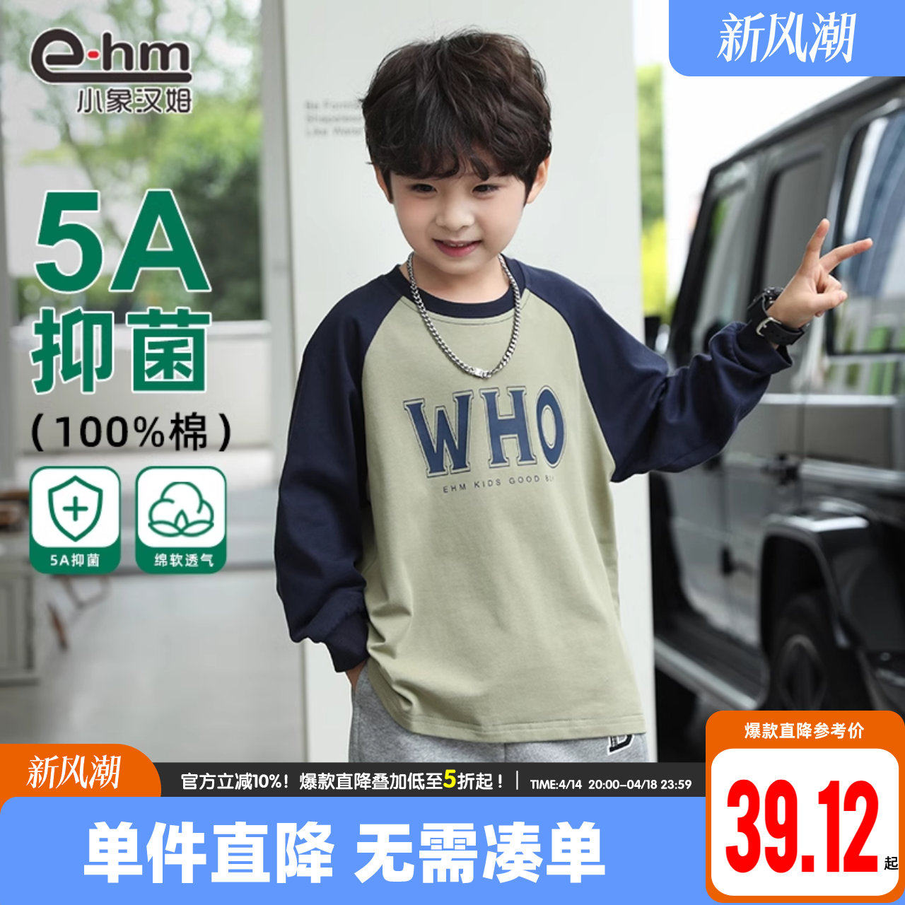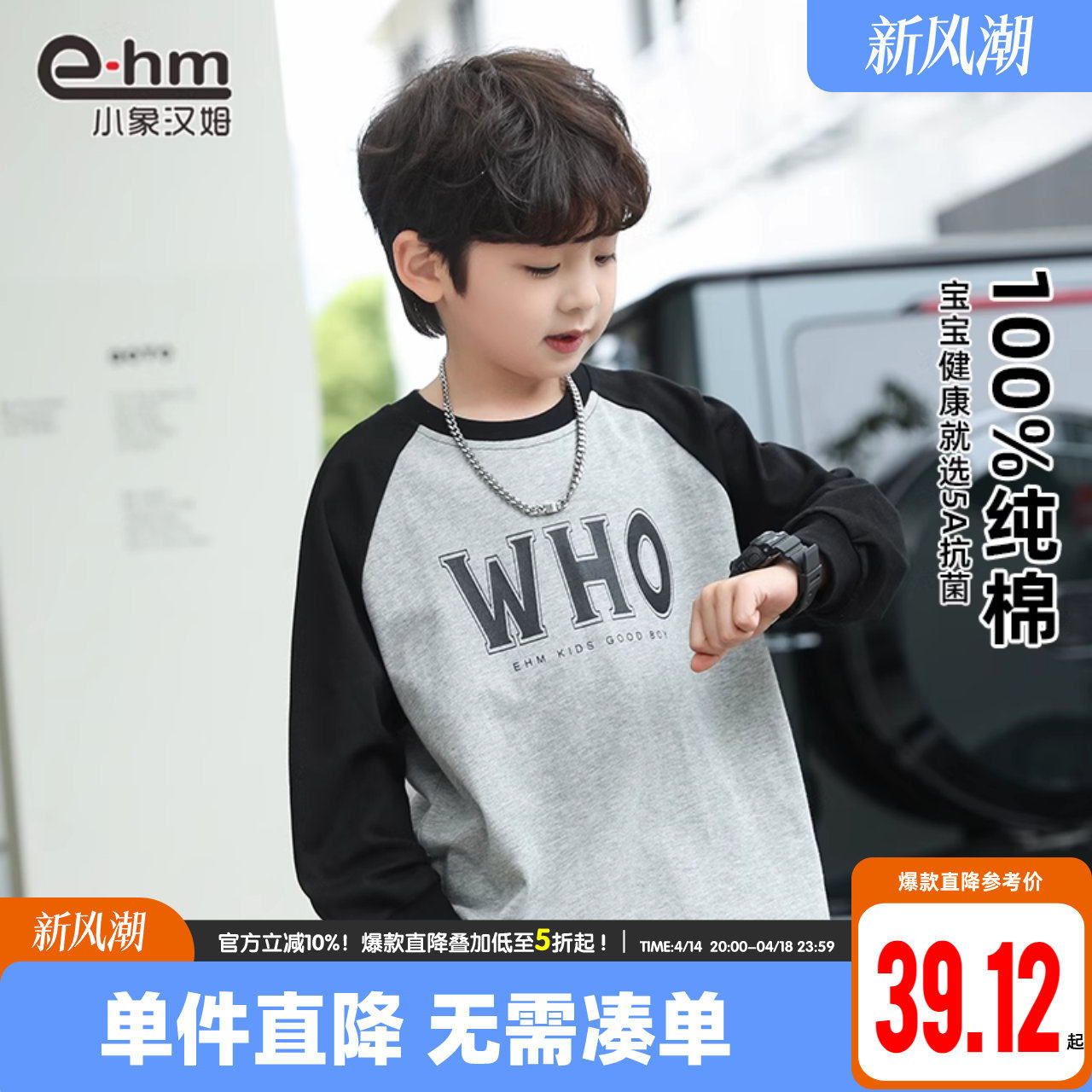 小象汉姆 Летняя одежда, хлопковый детский базовый приятный телу весенний антибактериальный лонгслив