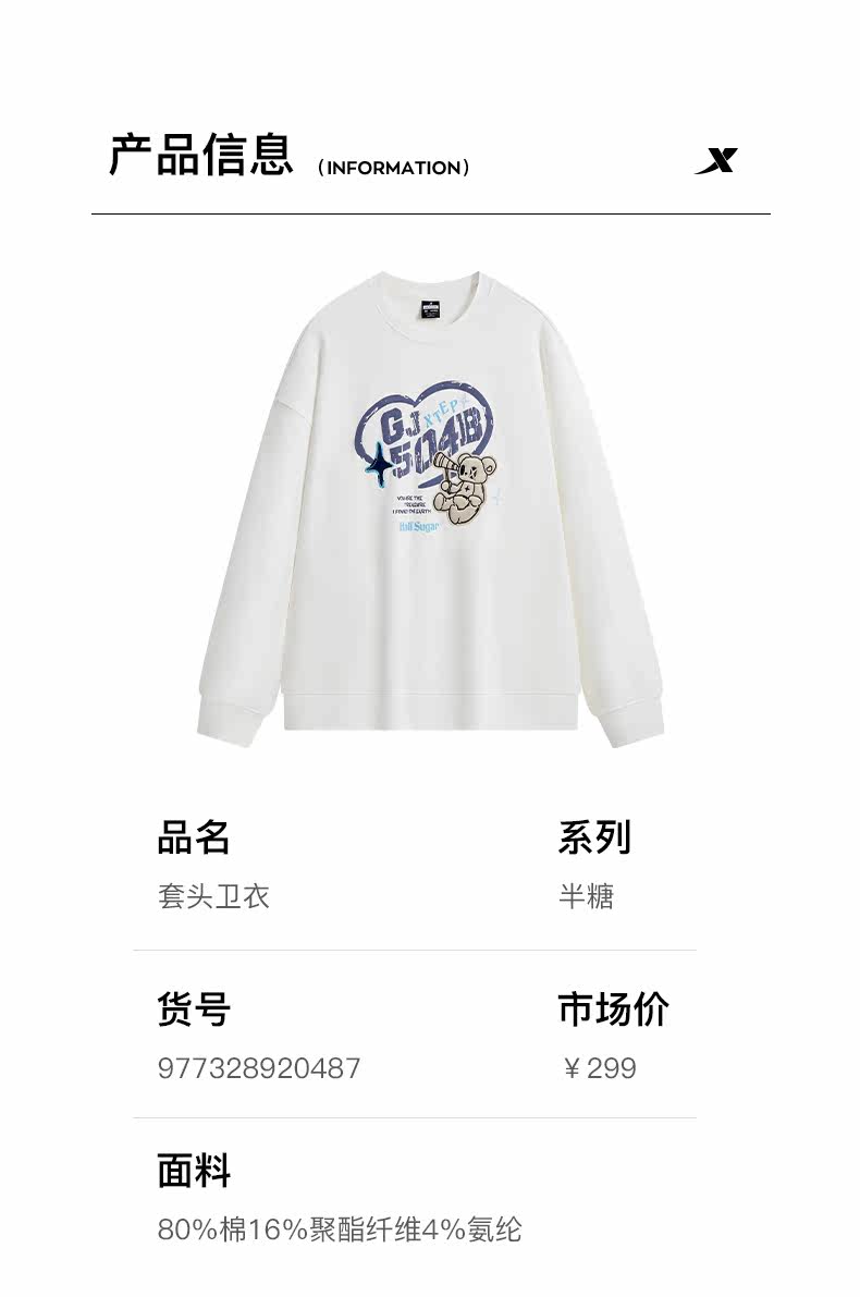 Xtep, демисезонная толстовка для отдыха, круглый воротник