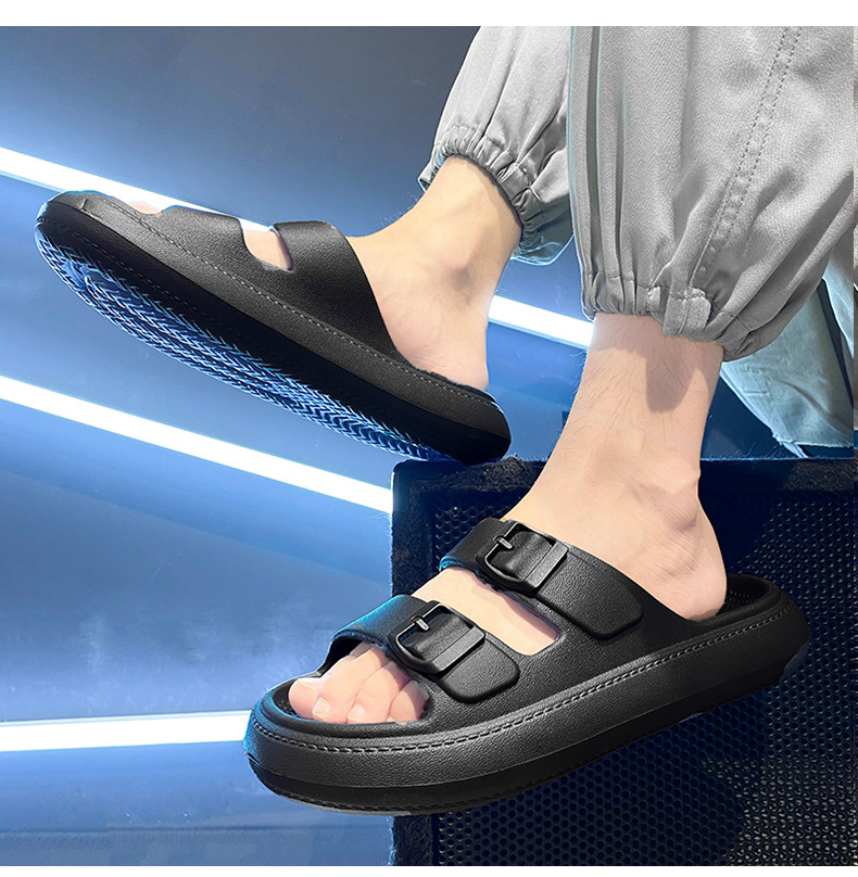 Мужские нескользящие тапочки на платформе, черные летние износостойкие пляжные сандалии
