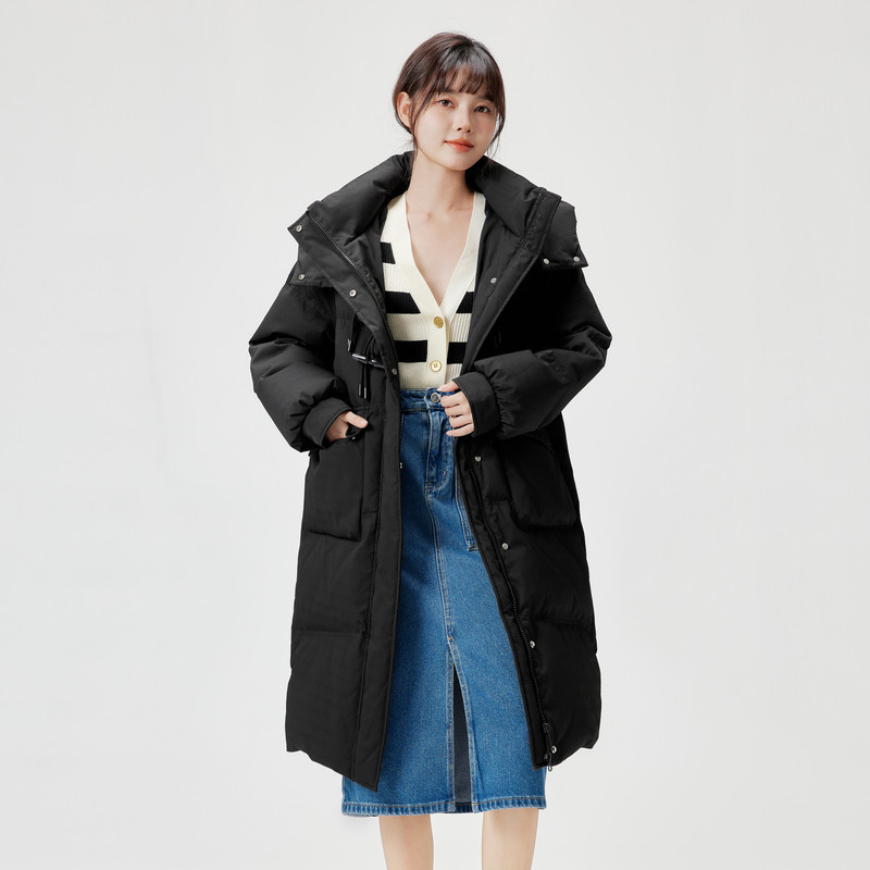 Зимний пуховик, длинная дизайнерская толстовка с капюшоном, удерживающая тепло ткань, тренд сезона