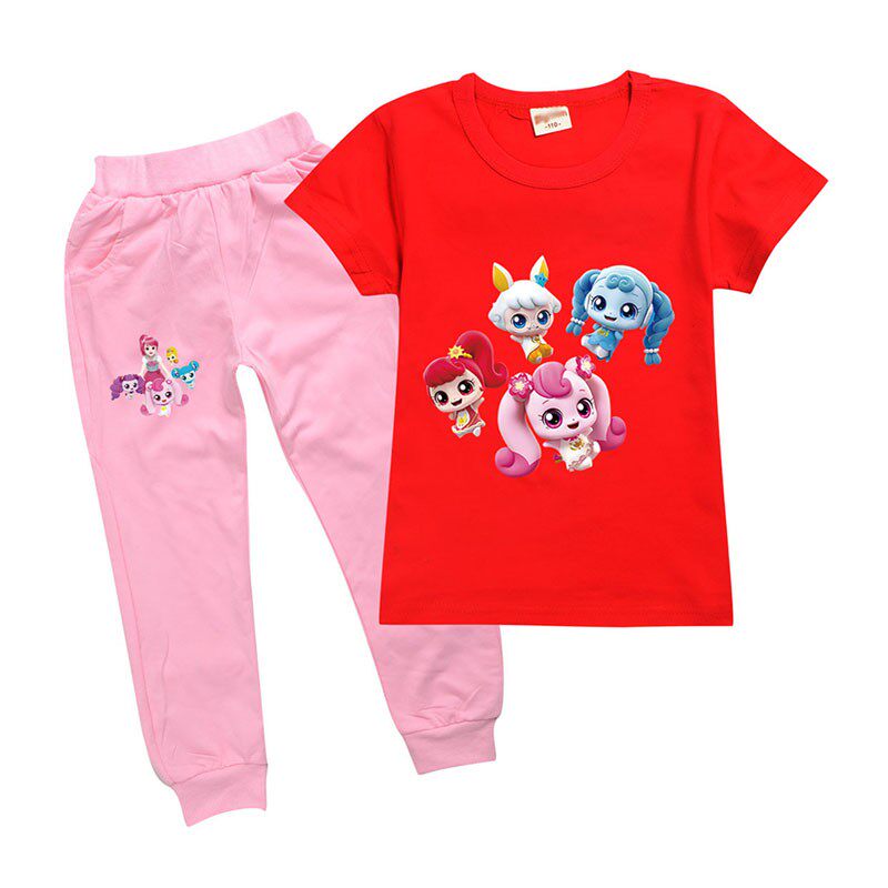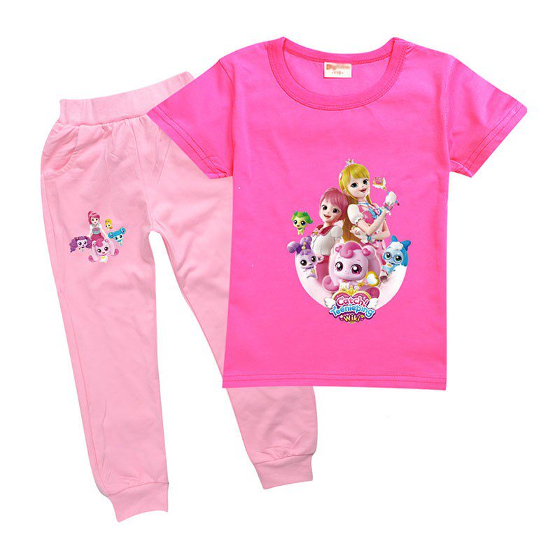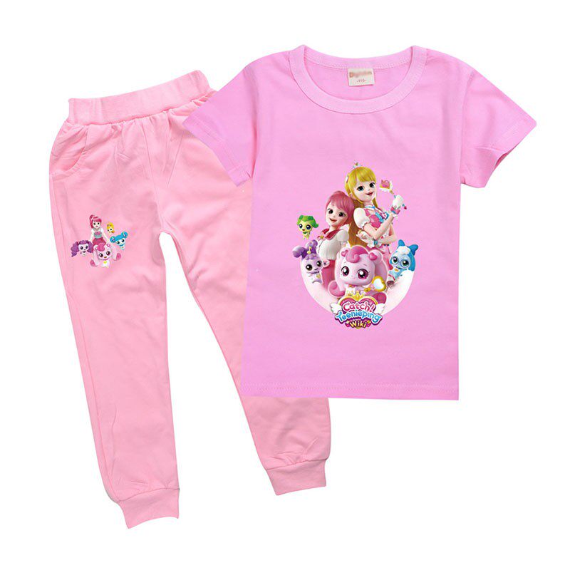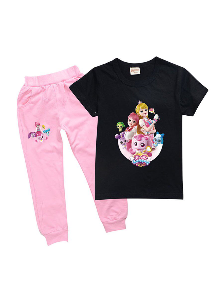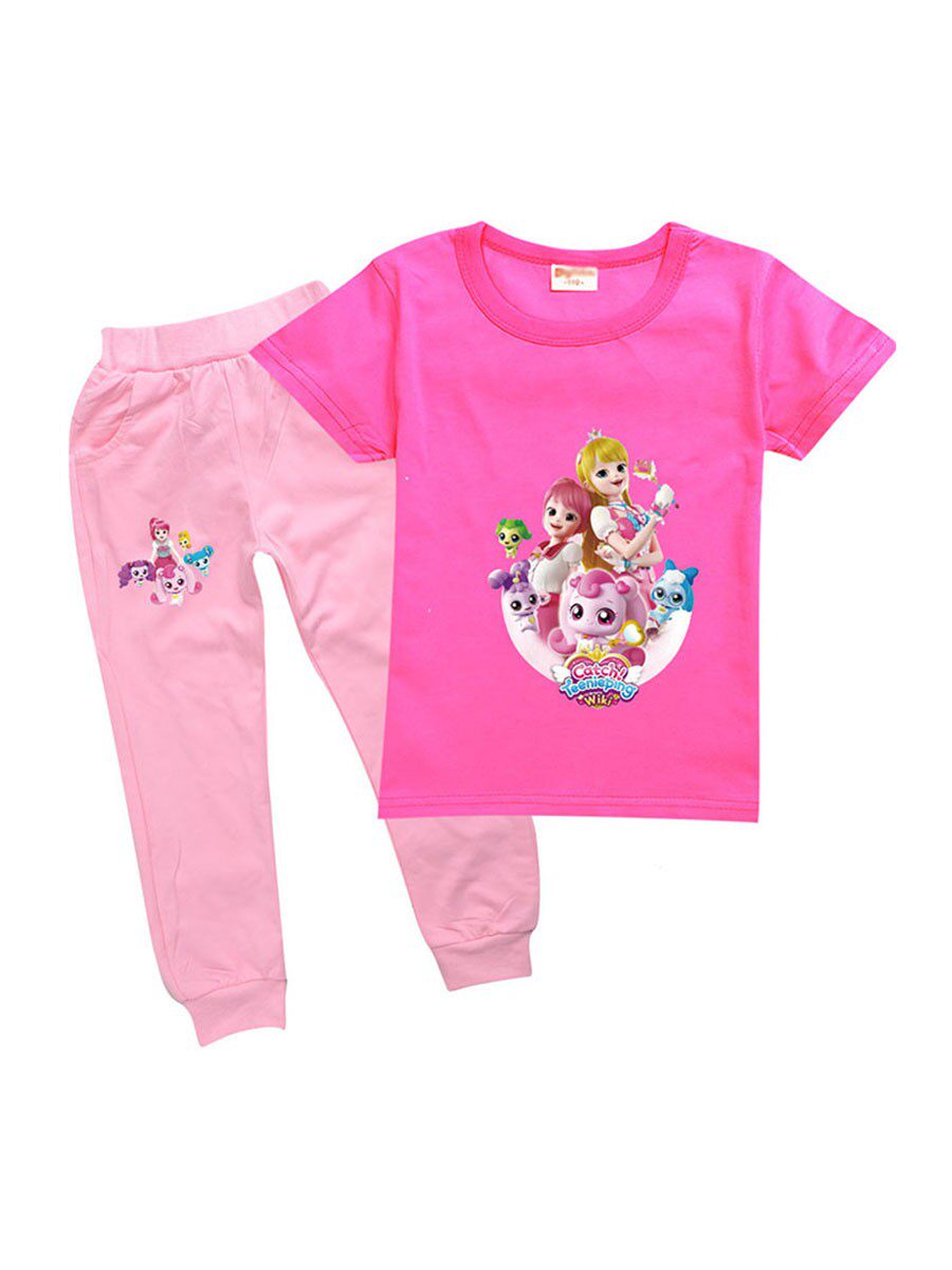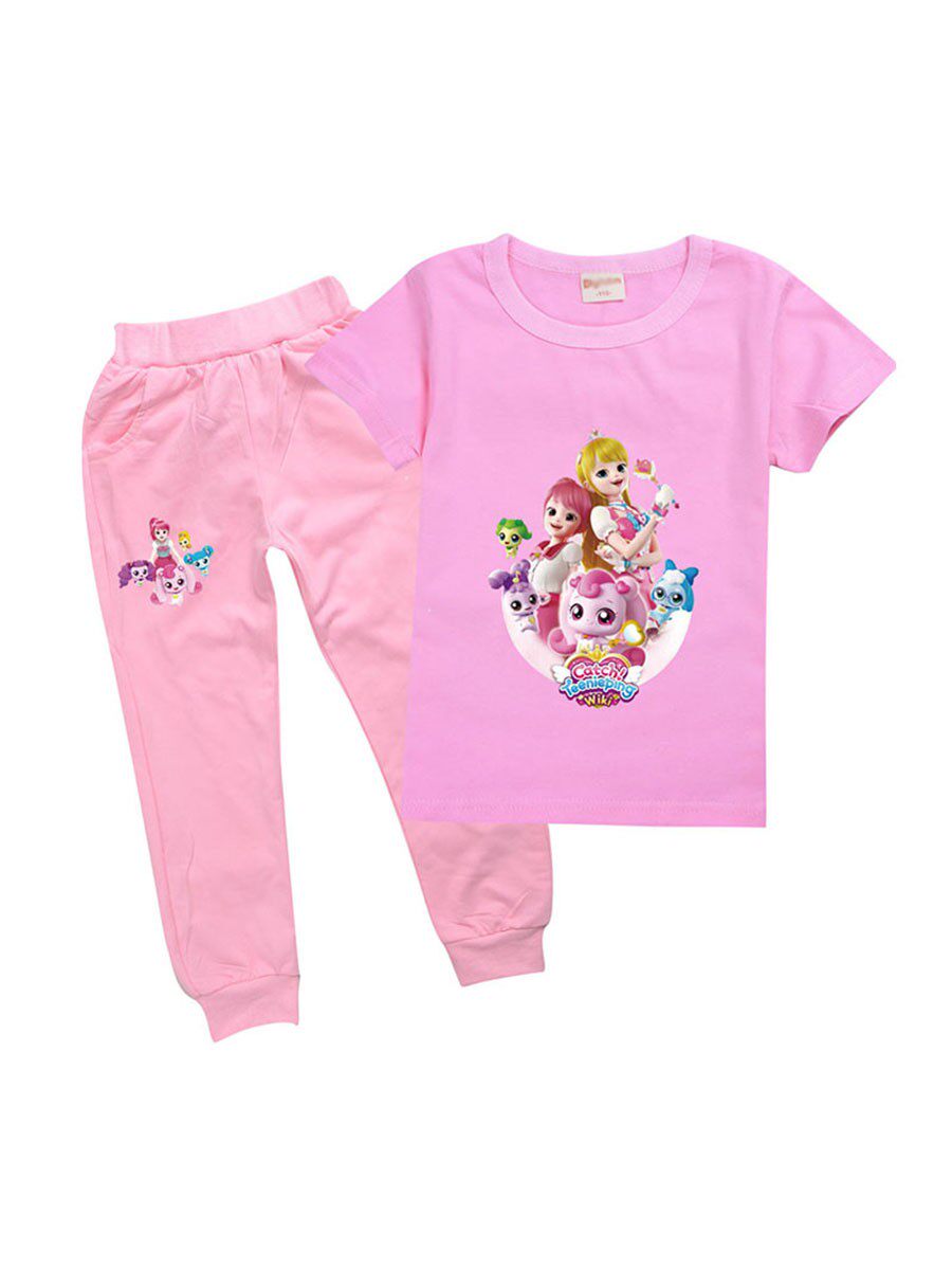 Хлопковая розовая футболка, детские летние мультяшные штаны, короткий рукав