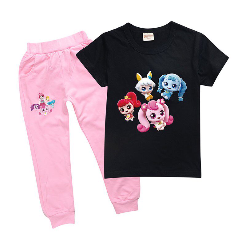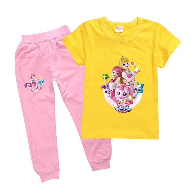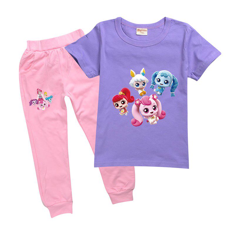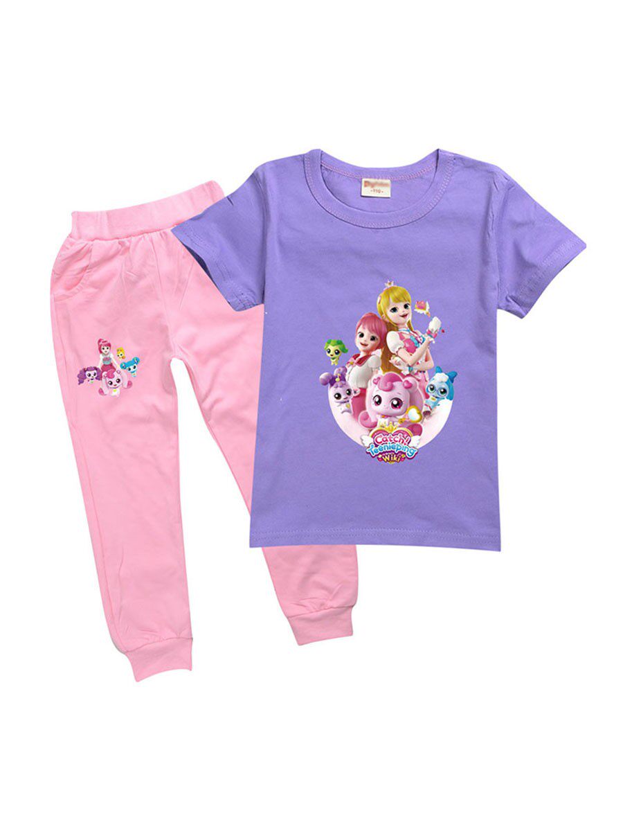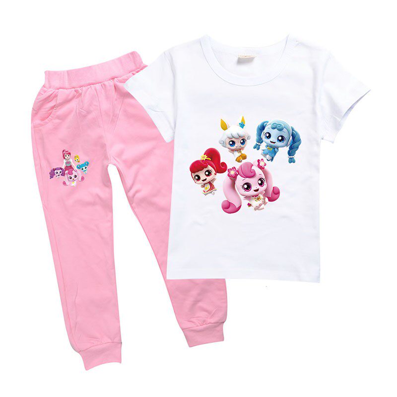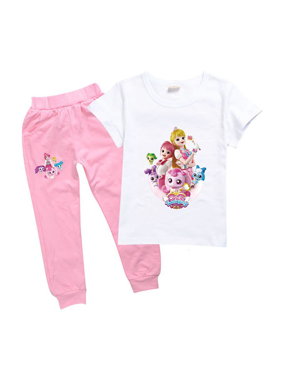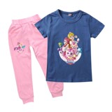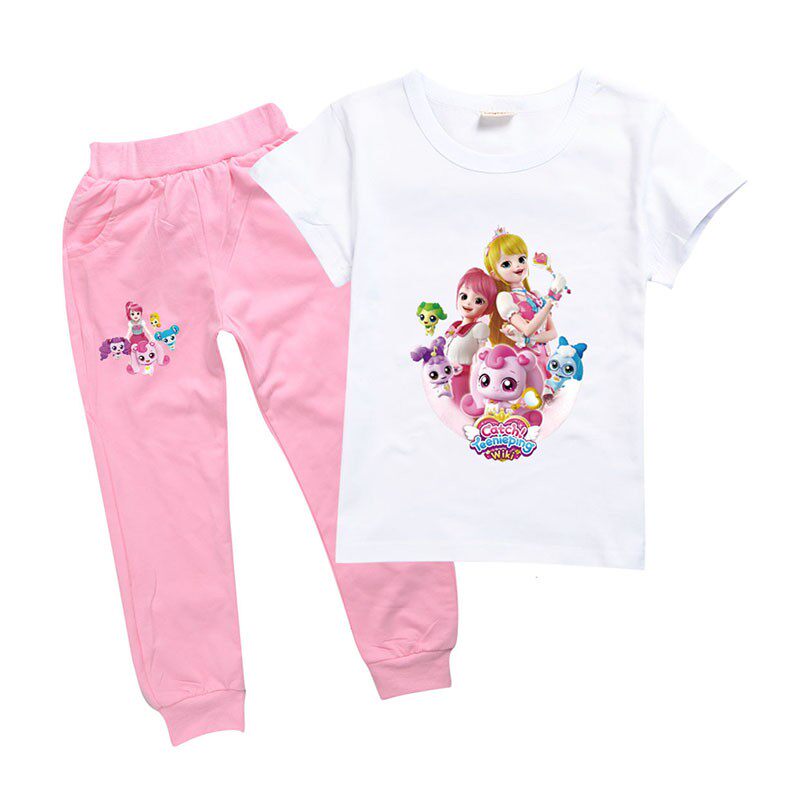Хлопковая розовая футболка, детские летние мультяшные штаны, короткий рукав