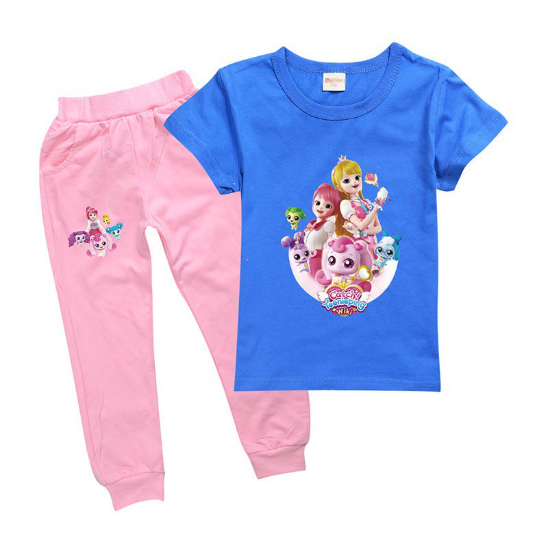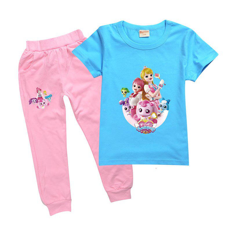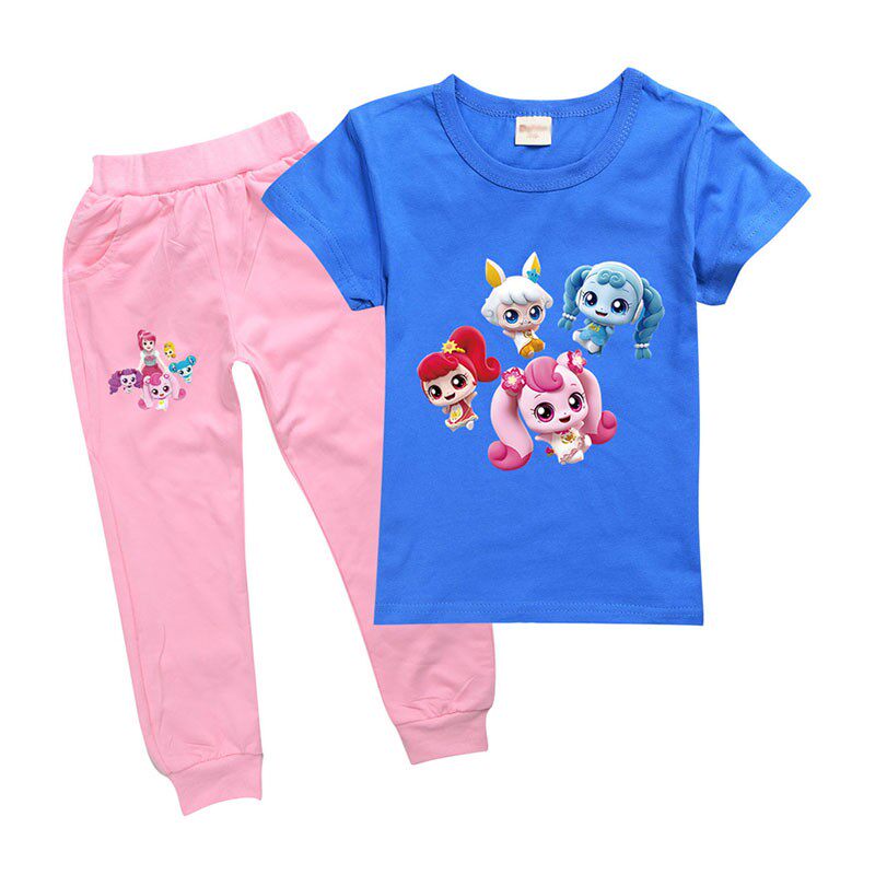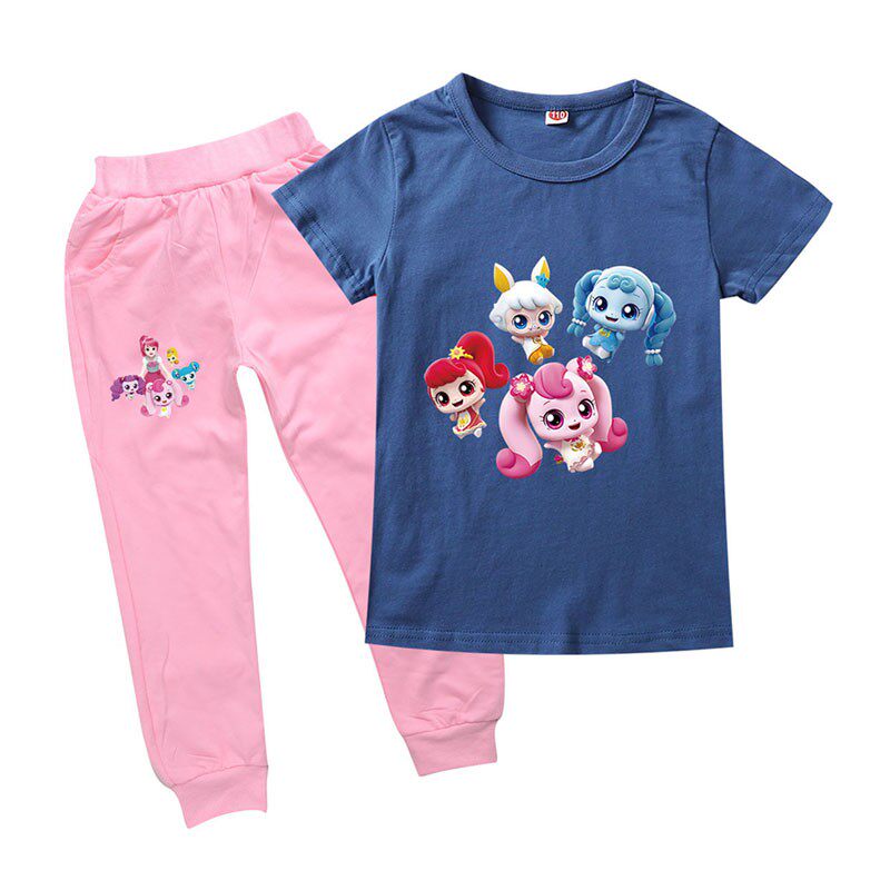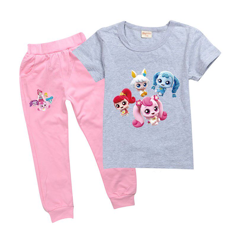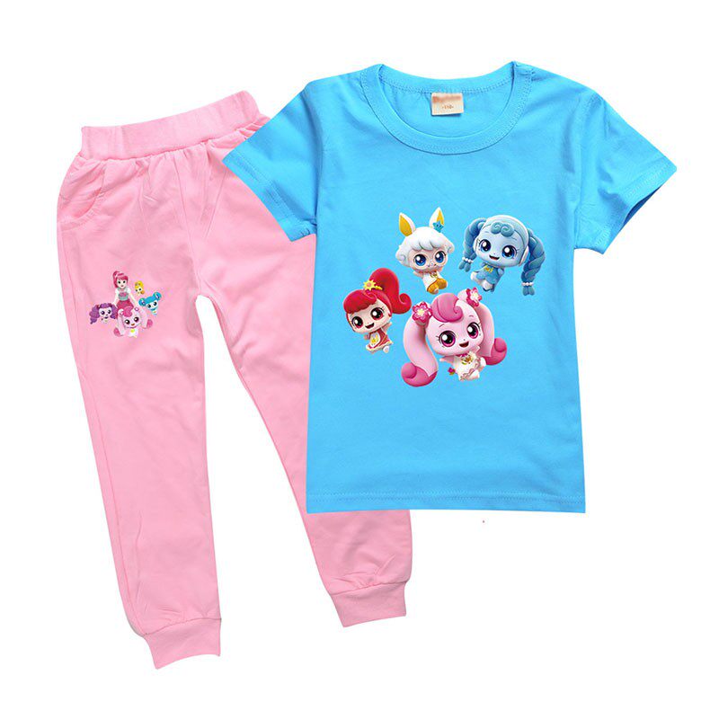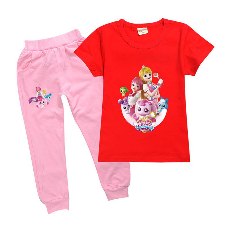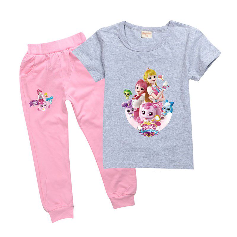 Хлопковая розовая футболка, детские летние мультяшные штаны, короткий рукав