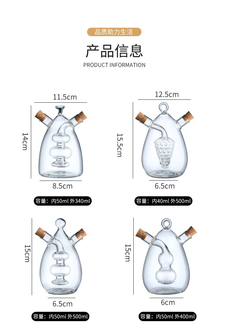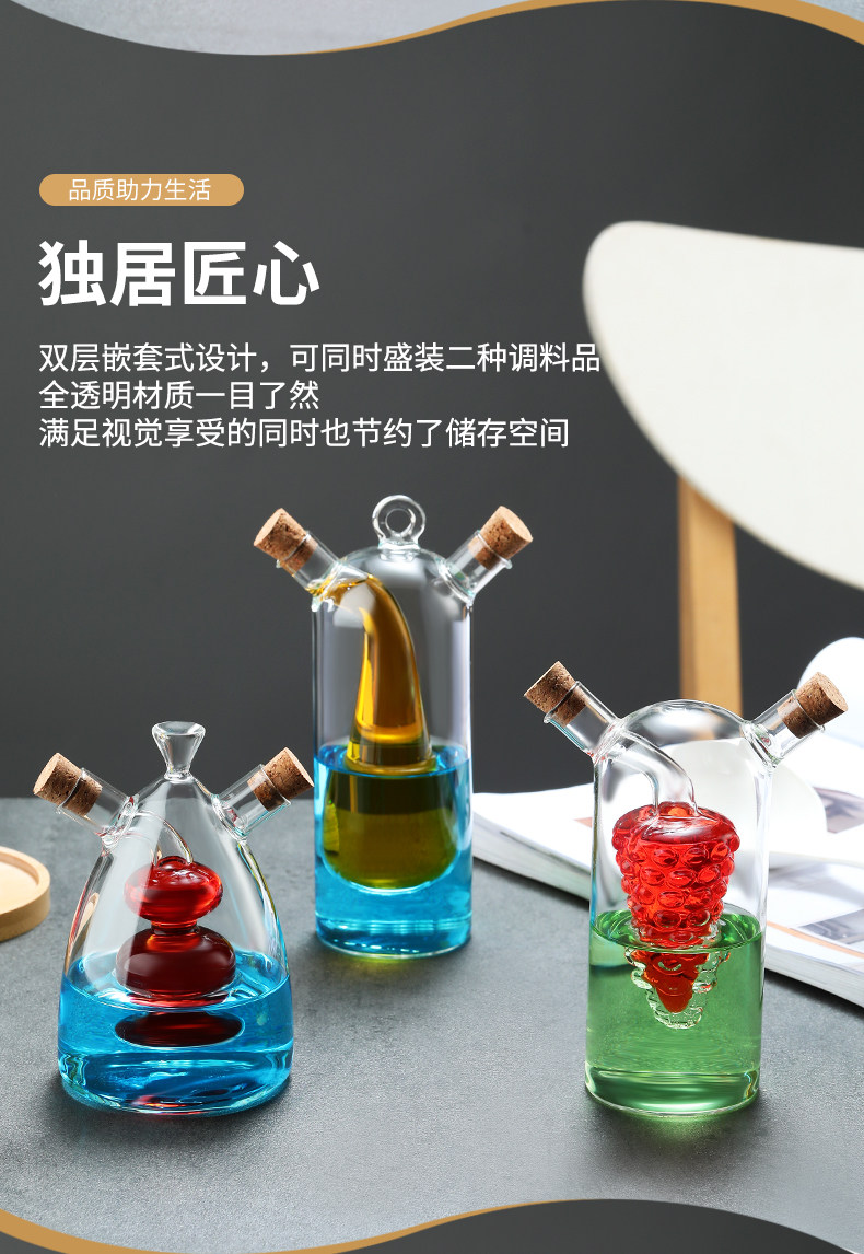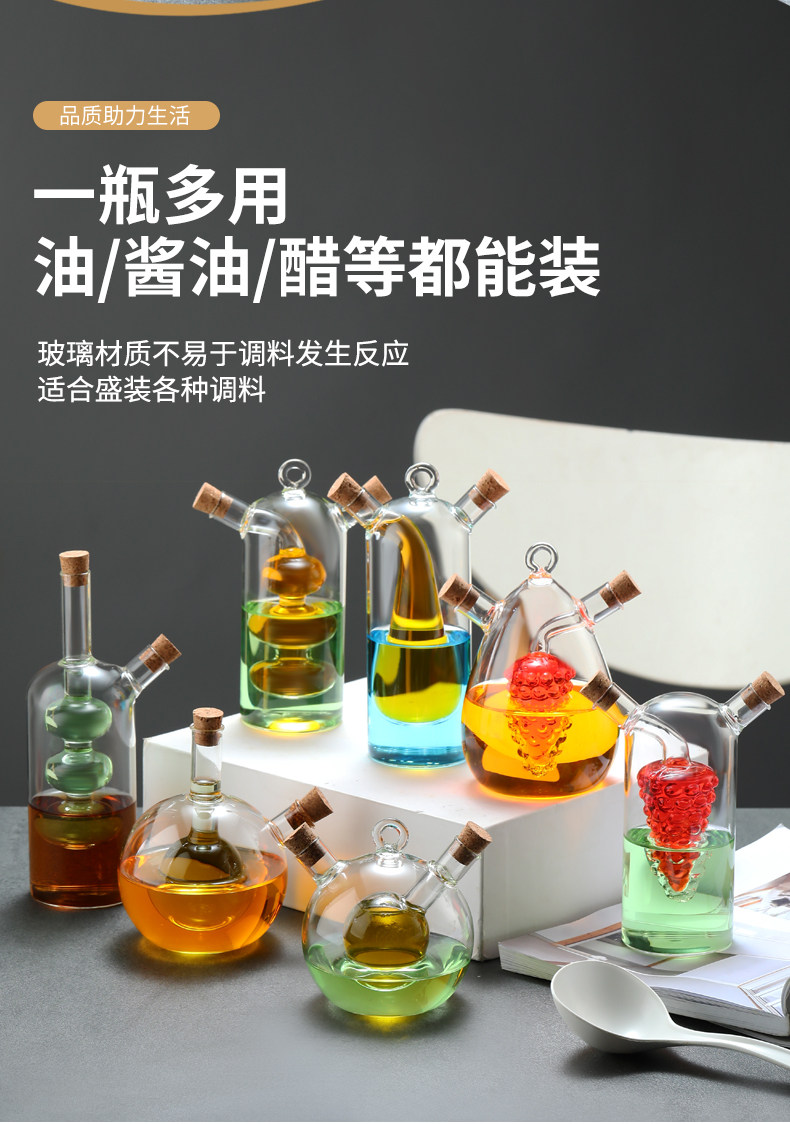 Творческий масляный горшок, оборудованный двумя -в одном кухонном соевом соевом уксусном приправном уплотнении, утолщенное свинец без двойного стеклянного масляного кастрюли