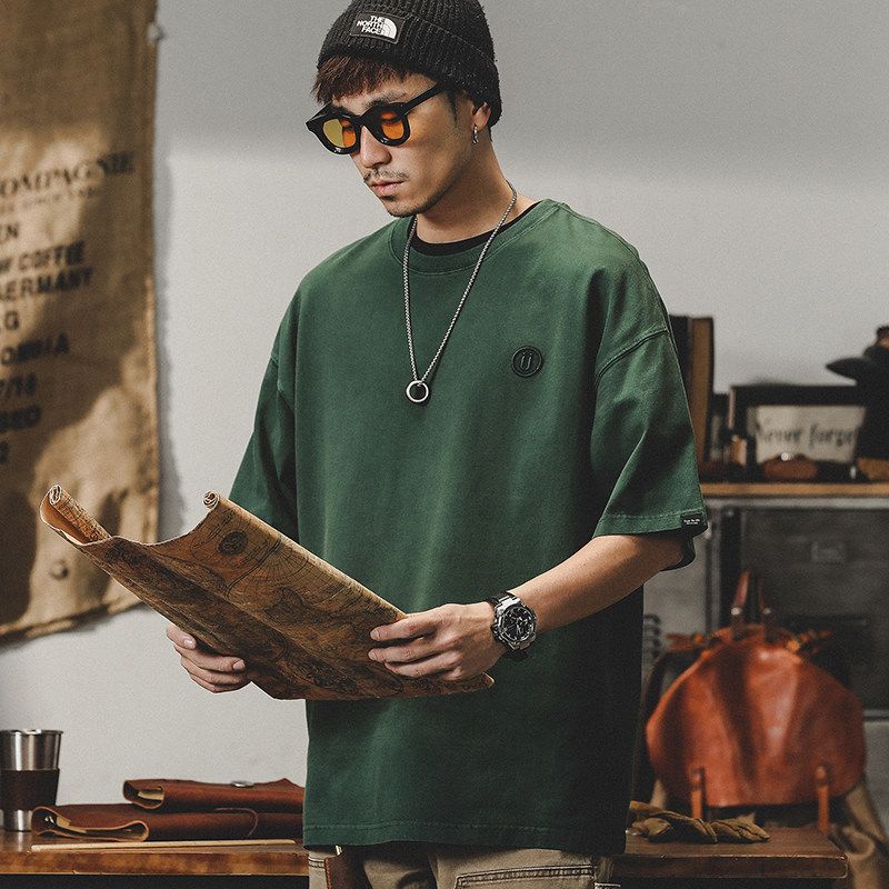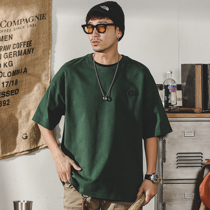 杰雷诺 Ретро летняя хлопковая брендовая однотонная цветная футболка с коротким рукавом с круглым воротником, в американском стиле, короткий рукав