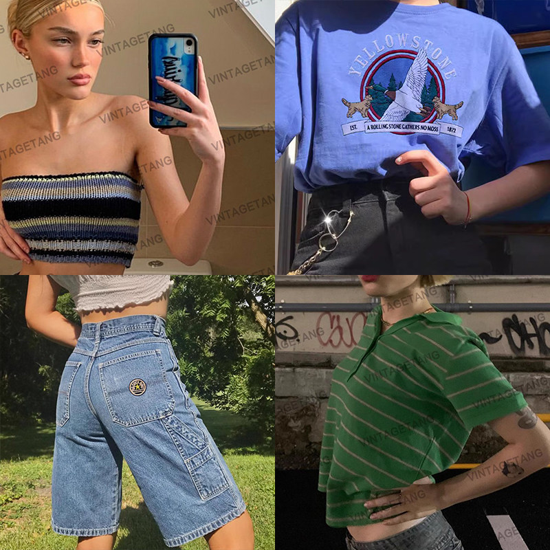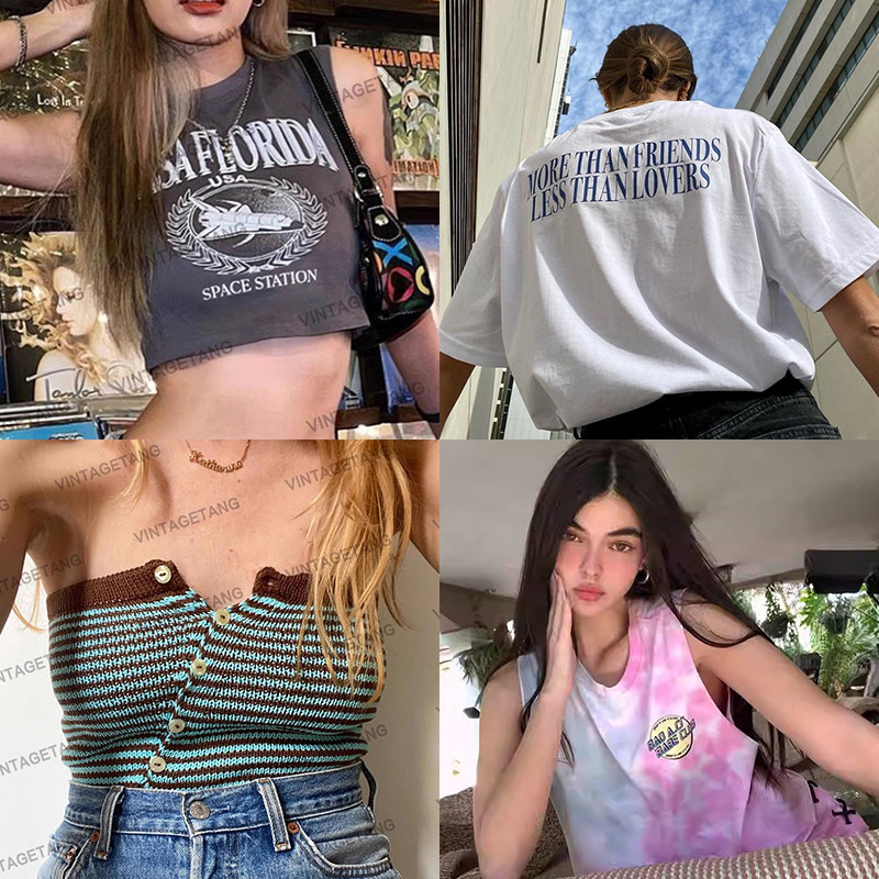 (9,9 очистка) Vintagetang American Retro Summer New Short -Sleed Collection