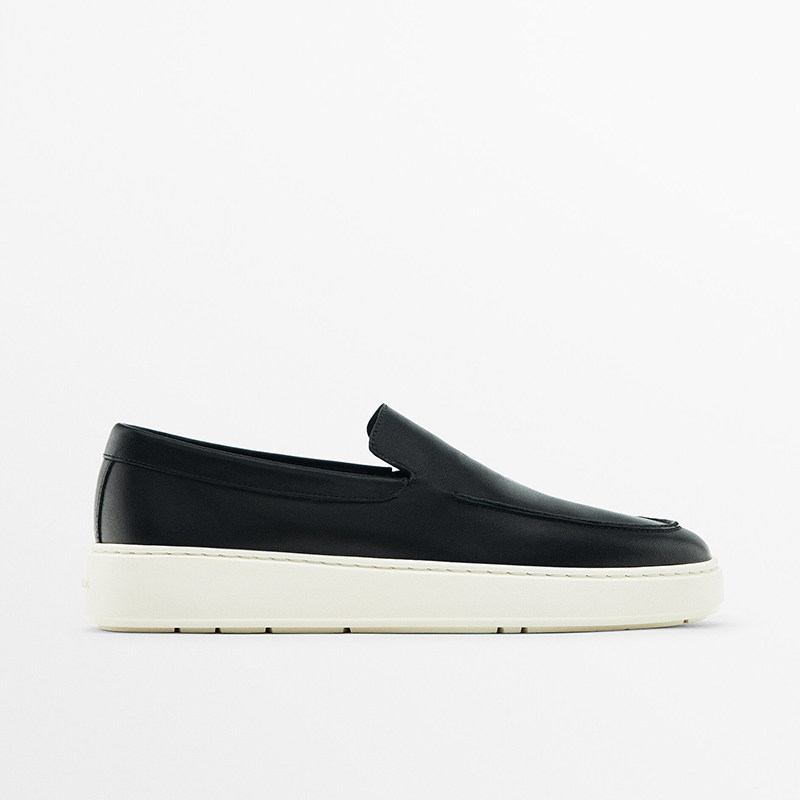 Massimo Dutti, дышащая обувь, лоферы для отдыха на платформе, из натуральной кожи