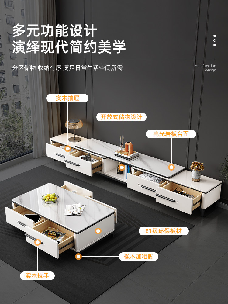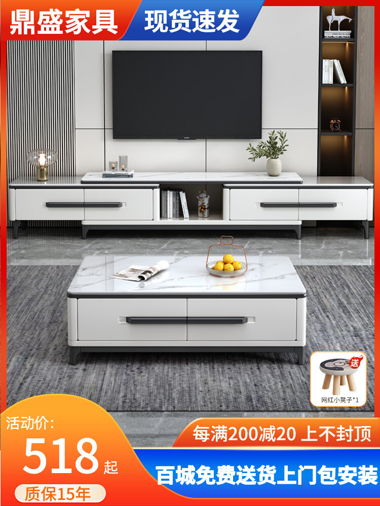 Телевизионный шкаф журнальный столик гостиная дом 2024 Новый твердый деревянный телевизионный шкаф Современный минималистский каменная доска посадочная шкаф