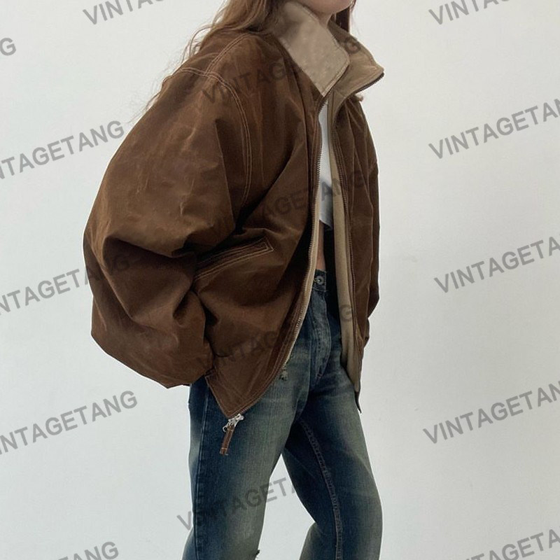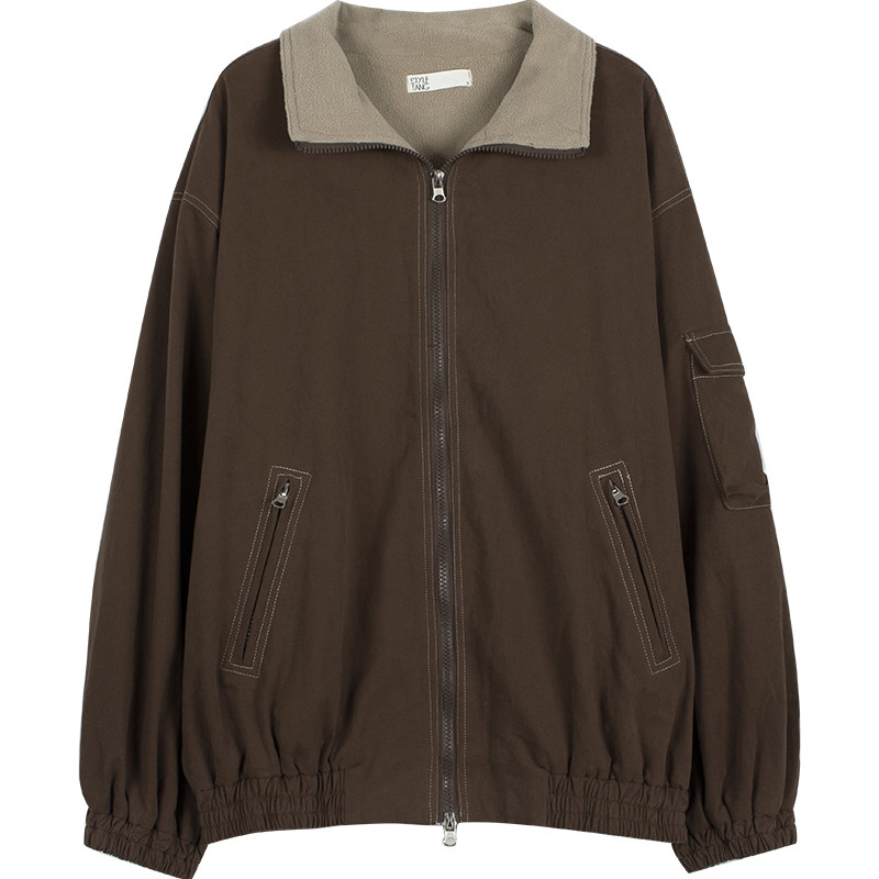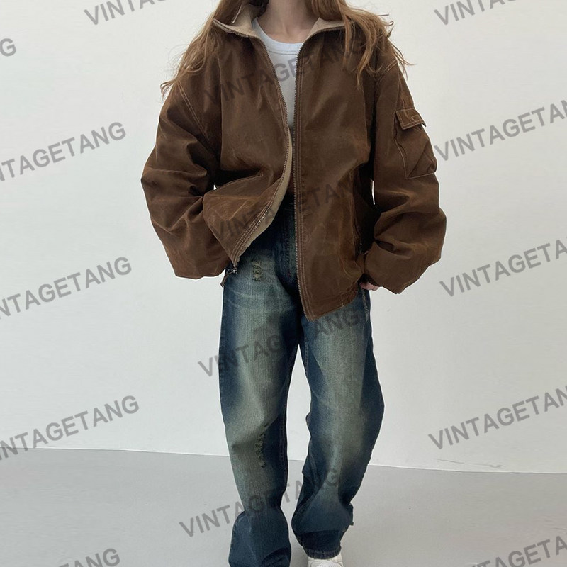 Ретро коричневая флисовая осенняя куртка, в американском стиле, оверсайз