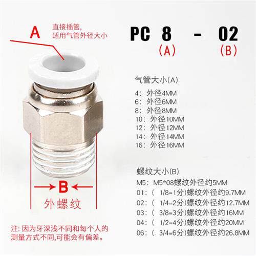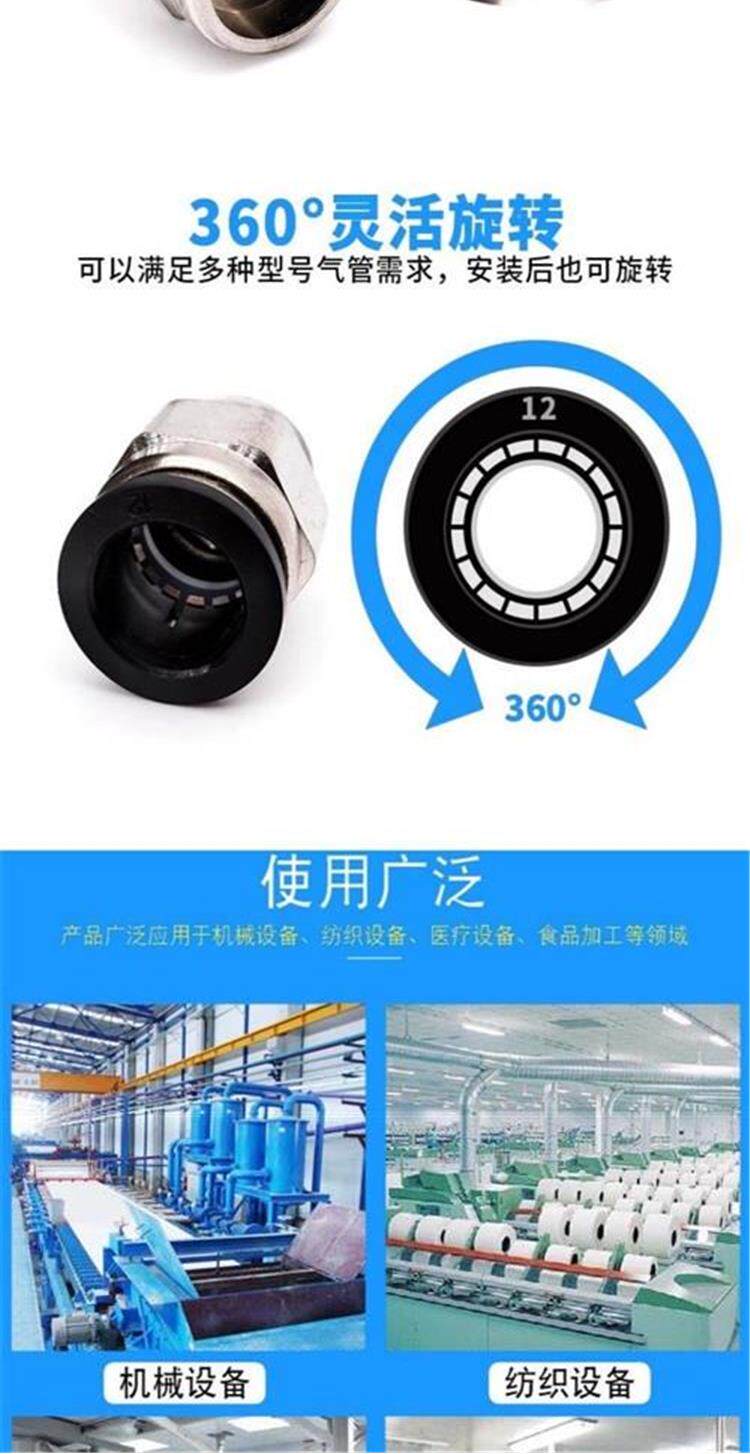 Требовая потока соединения непосредственно через PC4-M5/PC6PC8-02PC12 Черное соединение, подключенное к воздуху, быстро вставьте быстро
