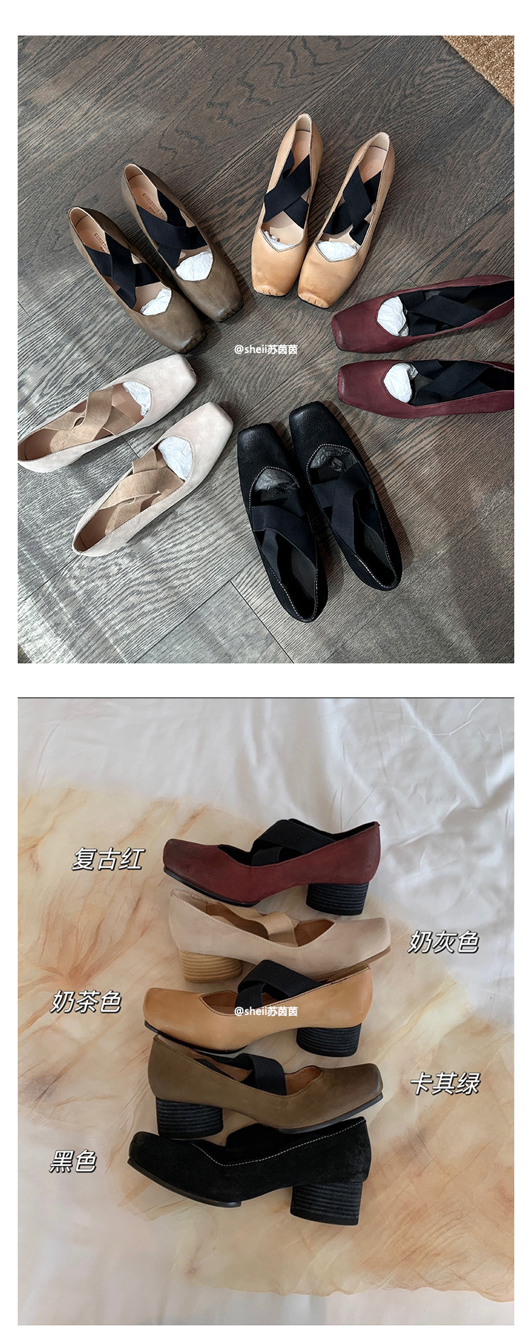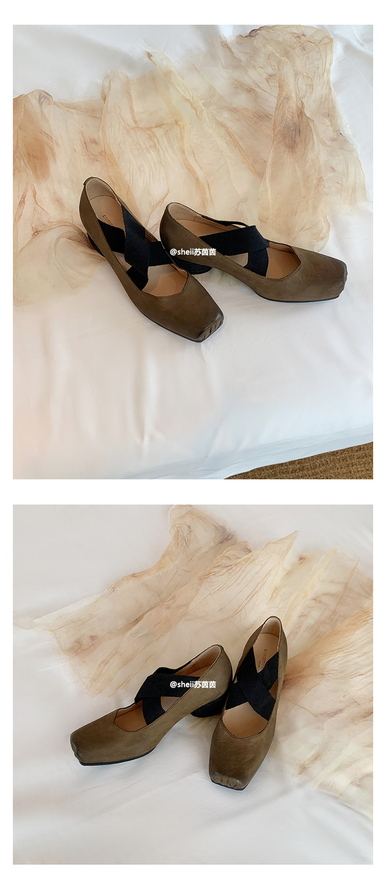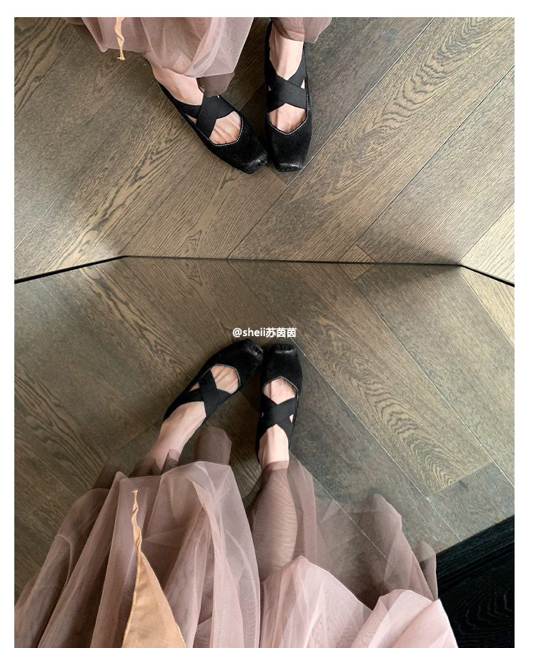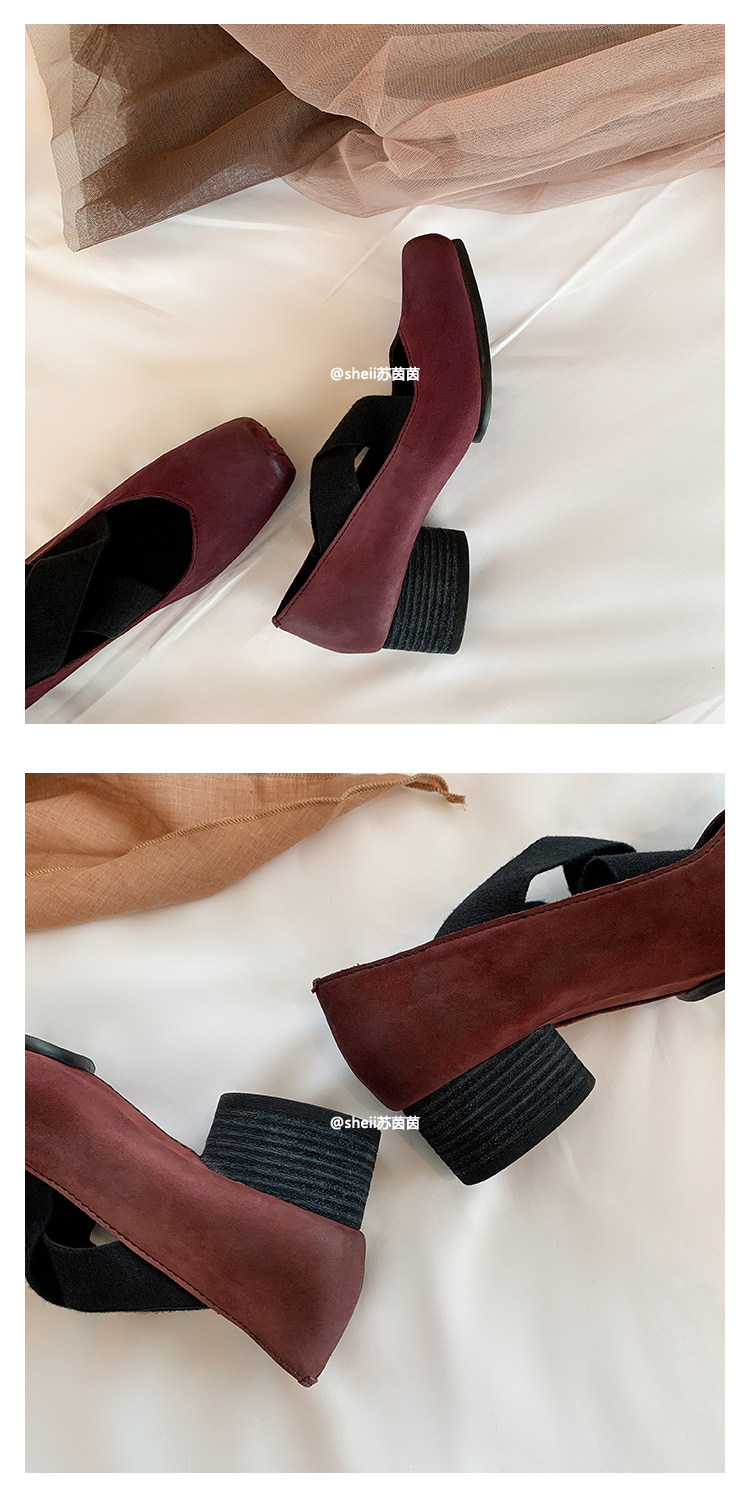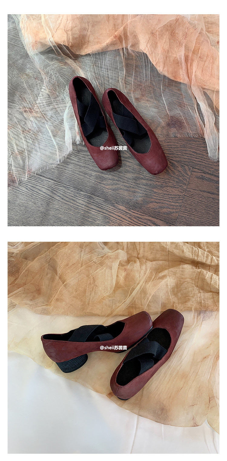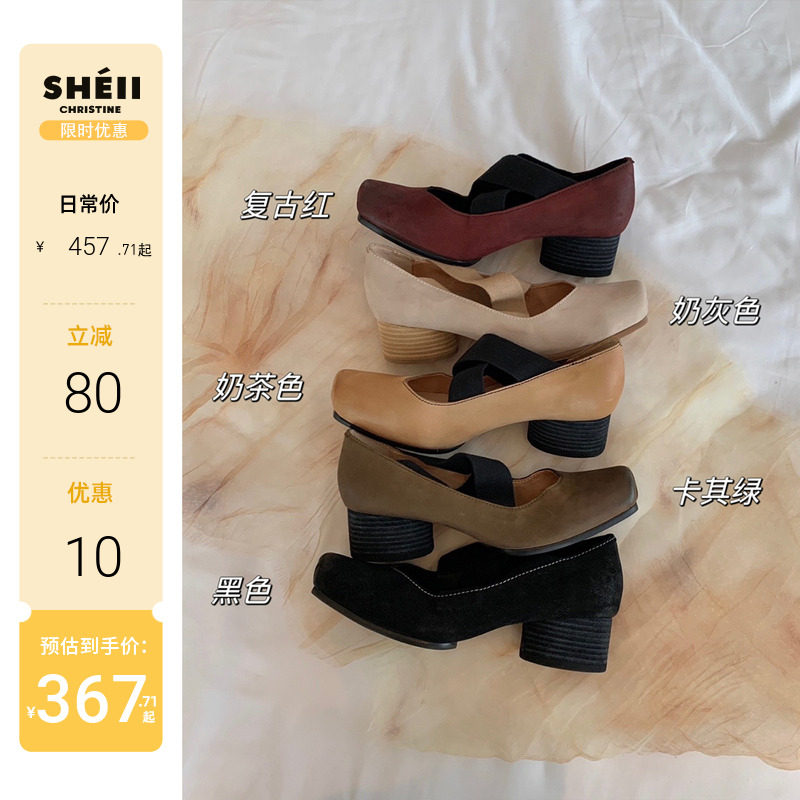 [sheii Su Yinyin] женские балетки из мытой конской кожи ~ umw со свиным носом в стиле ретро с перекрестным ремешком и толстым каблуком