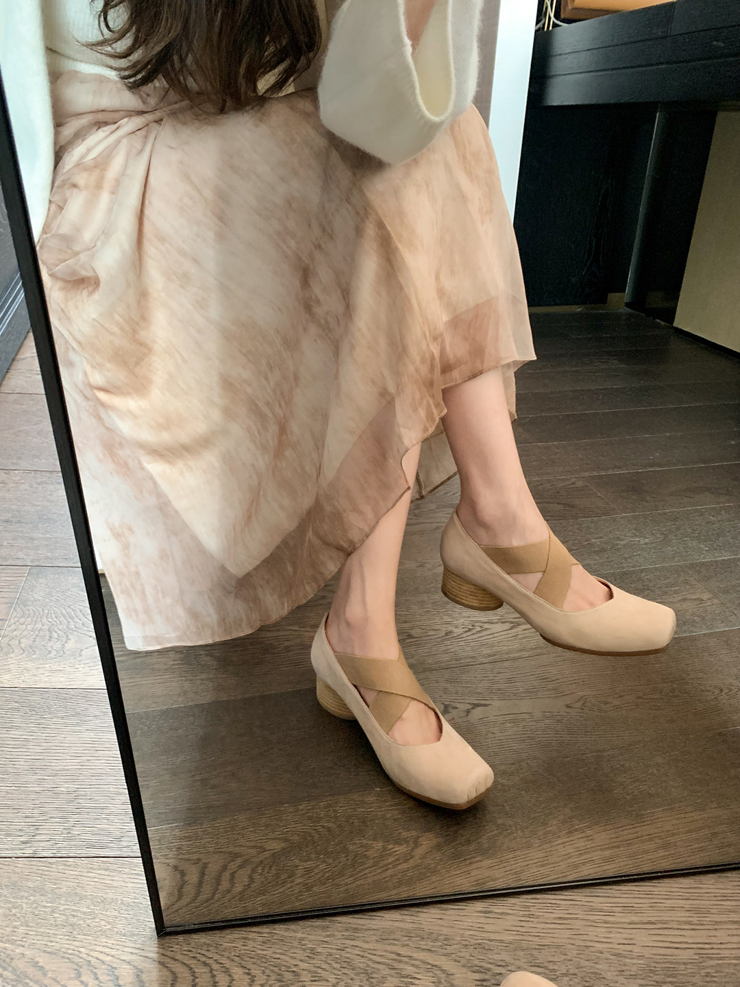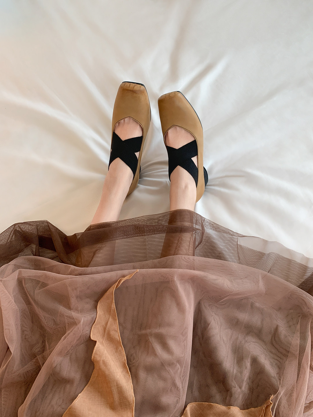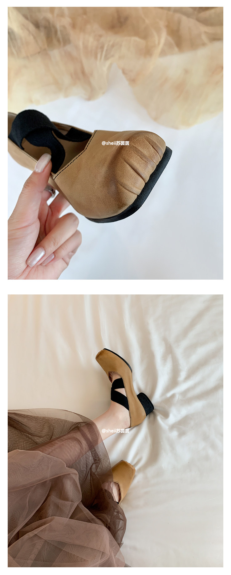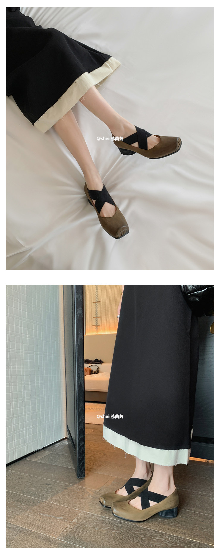 [sheii Su Yinyin] женские балетки из мытой конской кожи ~ umw со свиным носом в стиле ретро с перекрестным ремешком и толстым каблуком