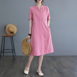 Милое цветное свободное платье, длинная юбка, короткий рукав, яркий броский стиль, средней длины