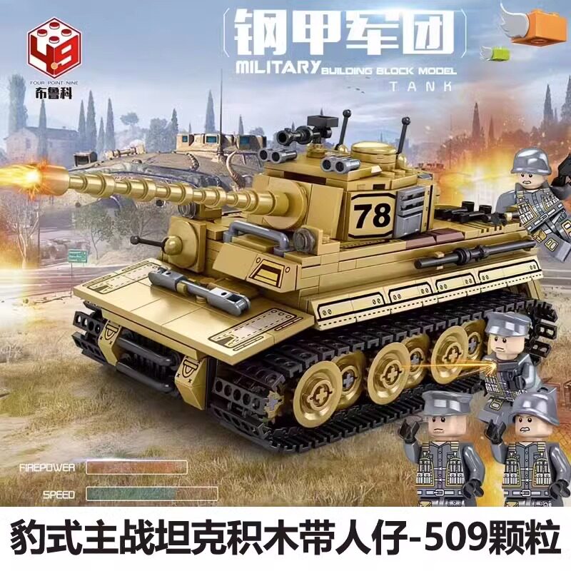Танк тигрового танка 34T Стройный квартал мальчиков для вставки Dongfeng 41 Межконтинентальный ракетный автомобиль Модель детской сборки и игры