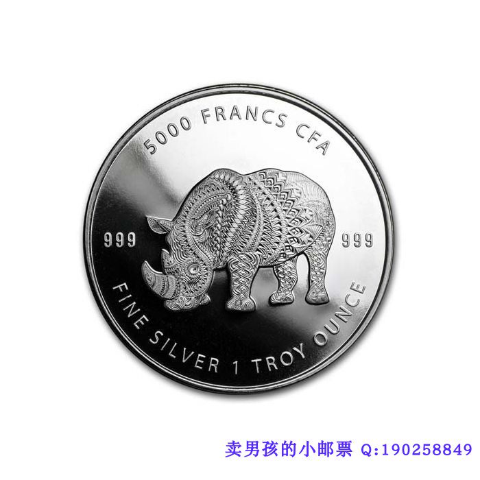 3363 = 2018 Республика Китайская носорога Мандела 1 унция 999 Серебряная монета (белые пятна)