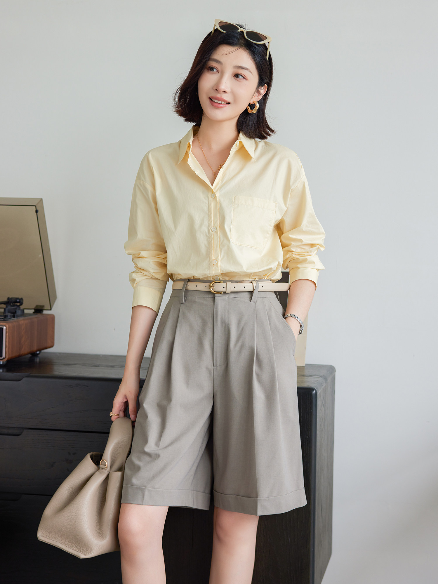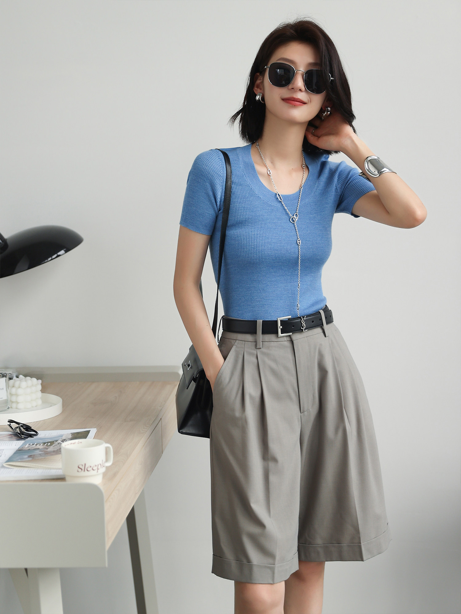 Fashion Bai показывает тонкие пять штанов для костюмов,Отражение простого и резкого повседневного стиля | ||||
