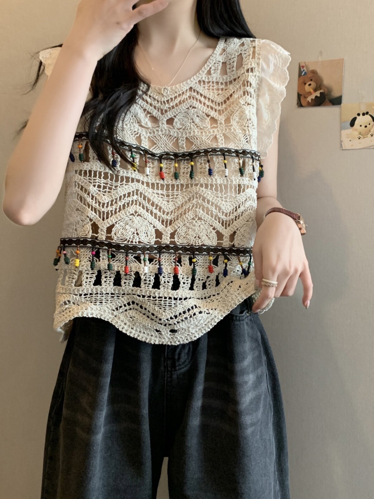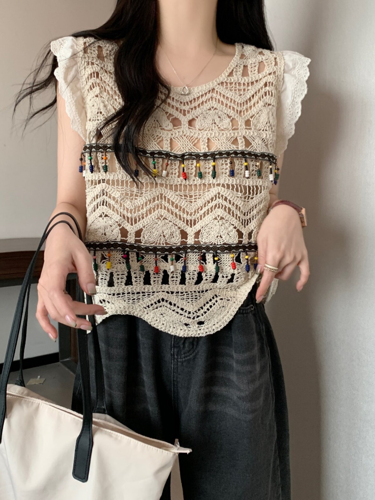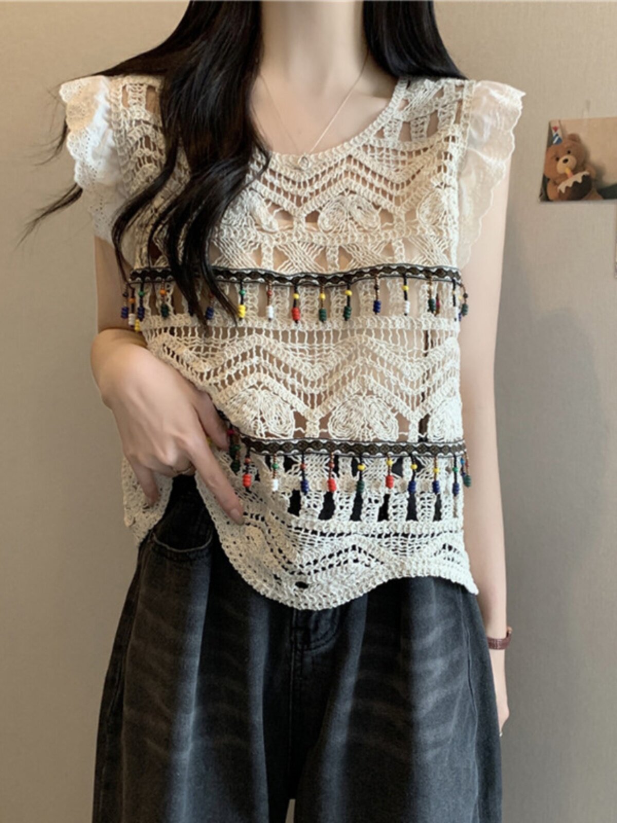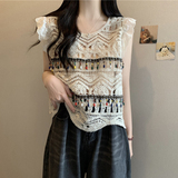 Майка топ, трикотажный этнический жилет без рукавов, большой размер, стиль бохо, этнический стиль