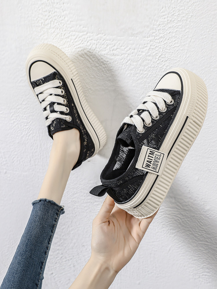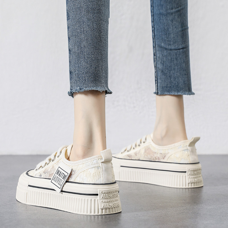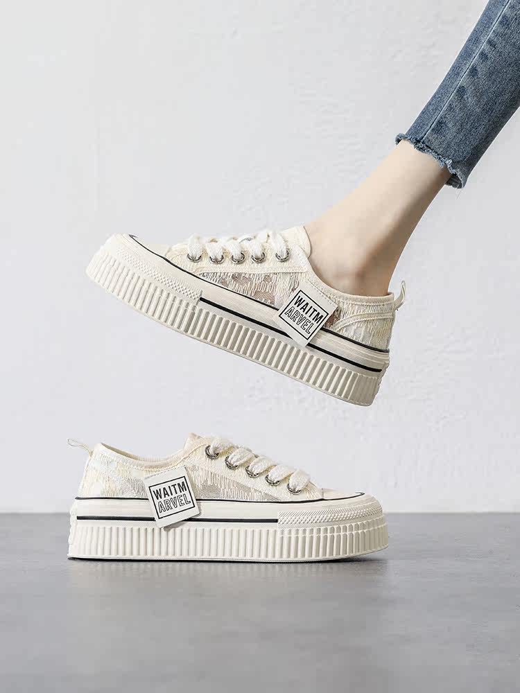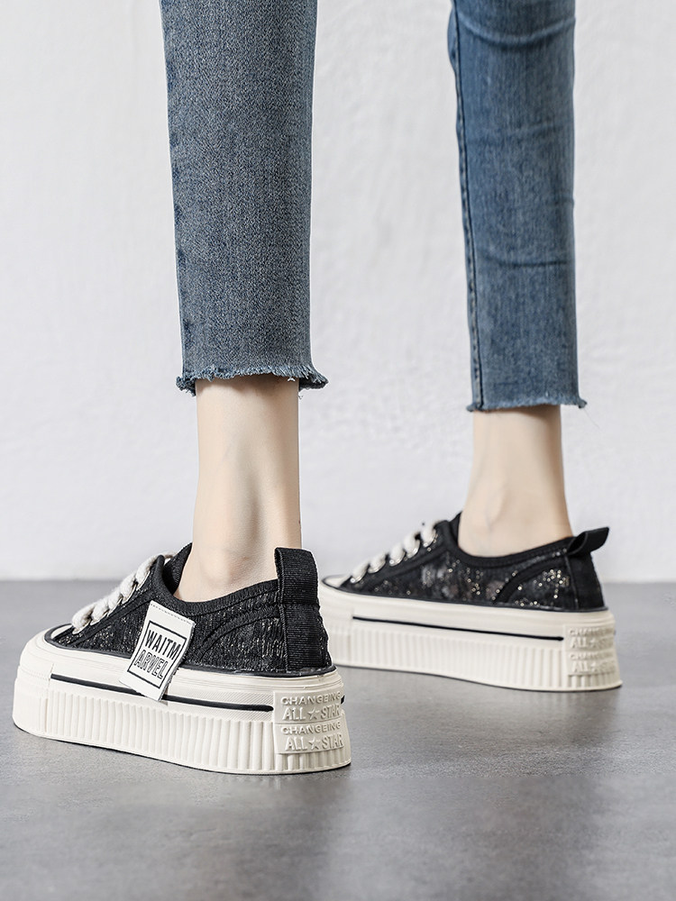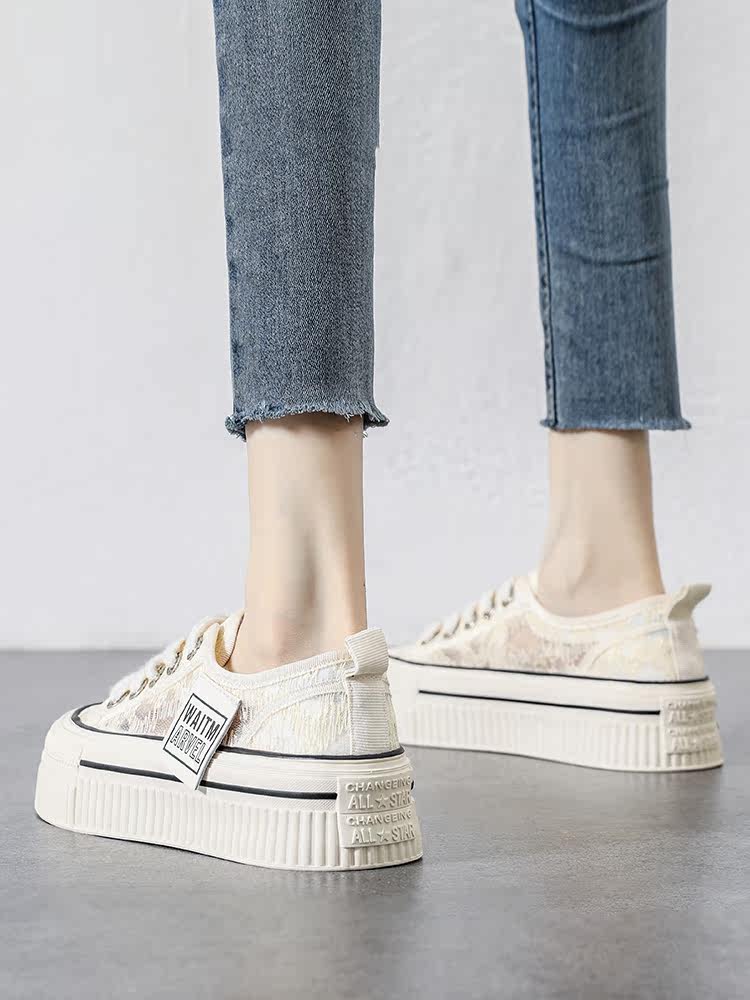 Дышащие белые туфли на толстой подошве для женщин, лето 2023, новые полые повседневные туфли, кроссовки с увеличенной высотой и отверстиями, спортивная обувь, туфли для досок