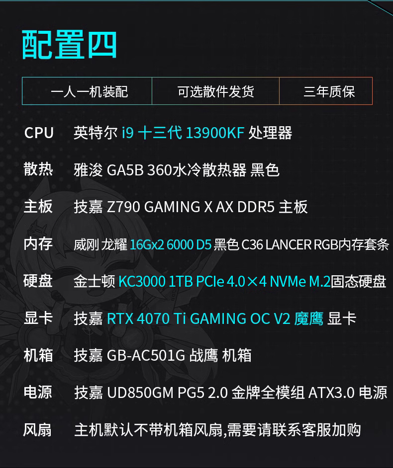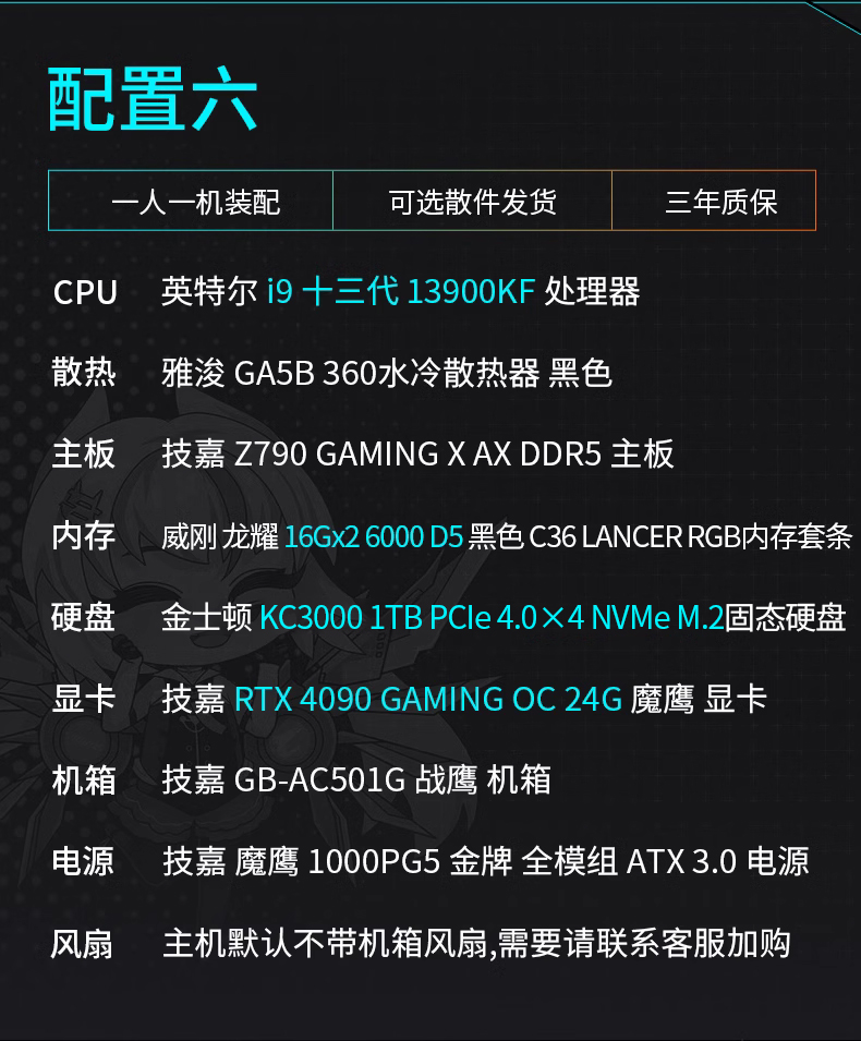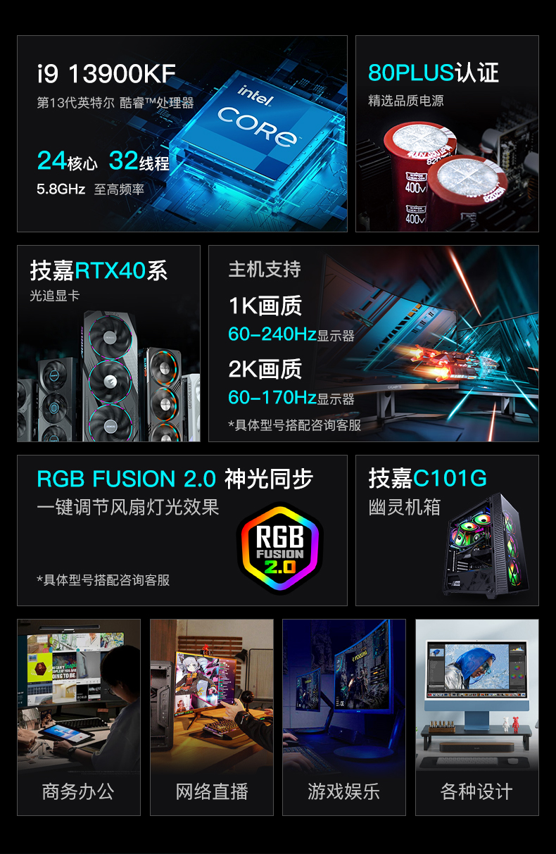| Емкость жесткого диска: | Настройка 1 13700KF/4070TI/32G/1T, Настройте два 13700KF/4080/32G/1T, Настройте три 13700KF/4090/32G/1T, Настройка 4 13900KF/4070TI/32G/1T, Настройка 5 13900KF/4080/32G/1T, Настройка 6 13900KF/4090/32G/1T |