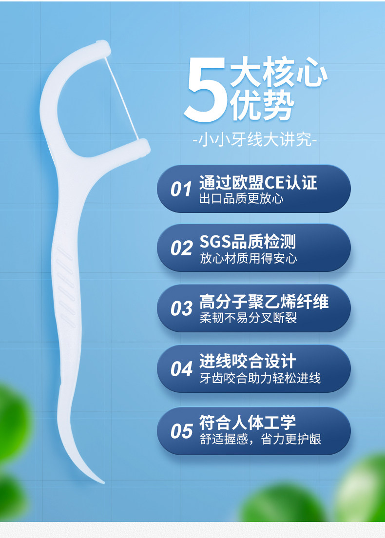 Полимерная портативная зубная нить, 500 шт