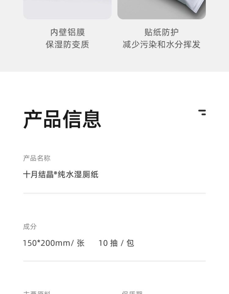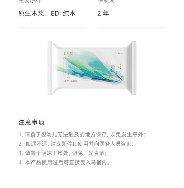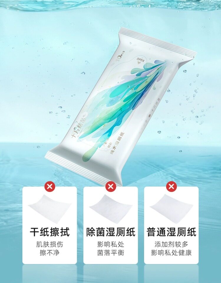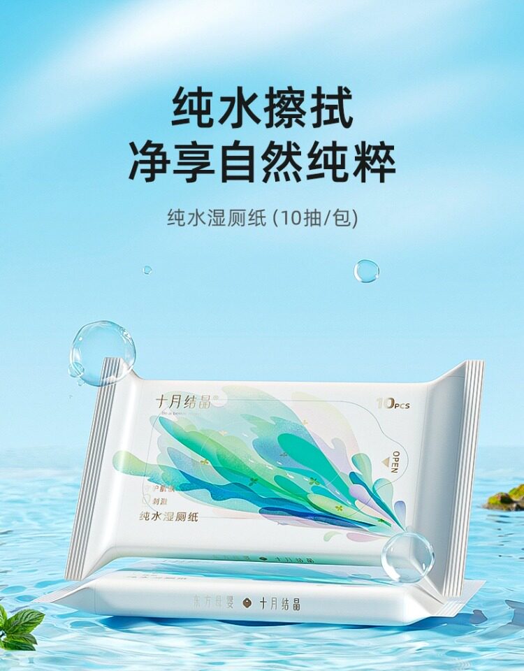 [Tmall U Сначала] Октябрьская кристаллическая влажная туалетная бумага Портативные женщины и ребенок могут использовать туалетную уборку туалетной бумаги 10 насос x4 сумка
