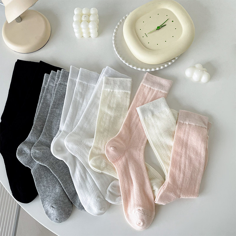 Белые носки, летние тонкие хлопковые дышащие гольфы, средней длины