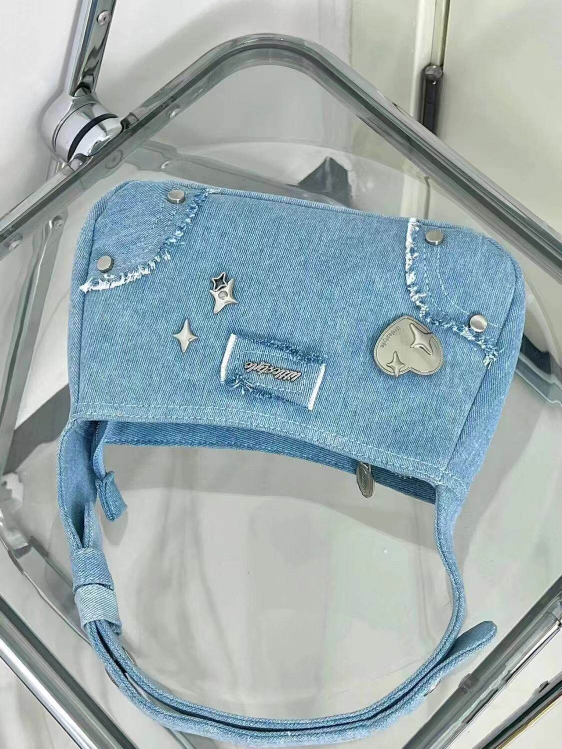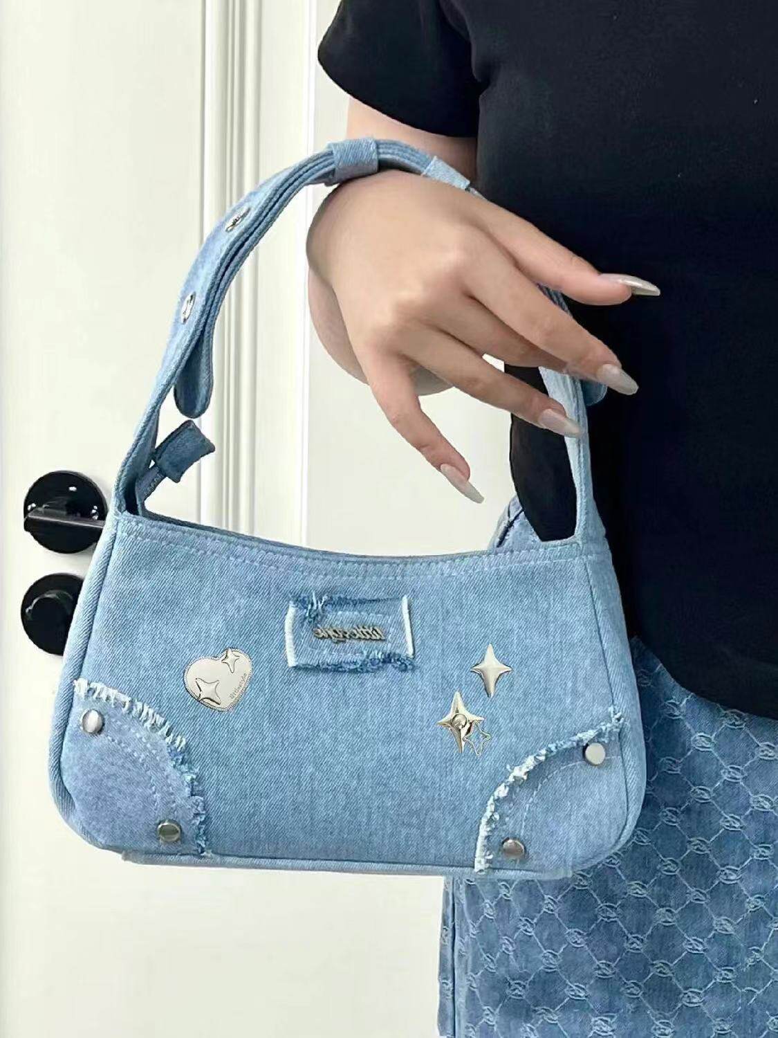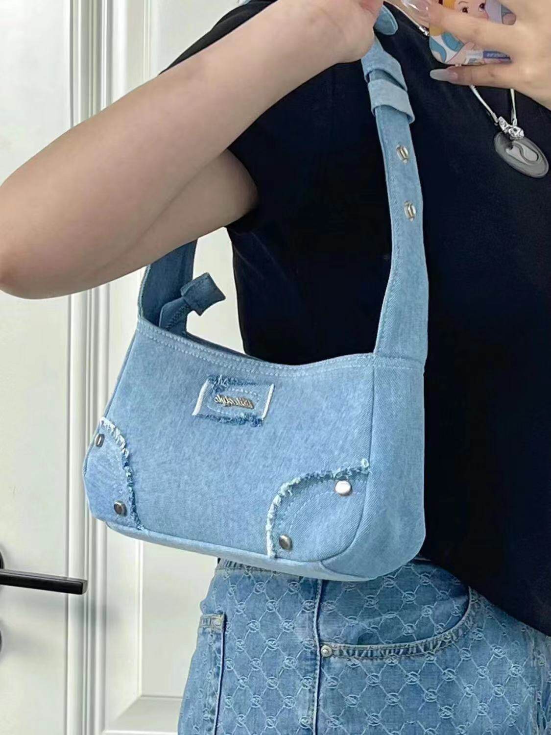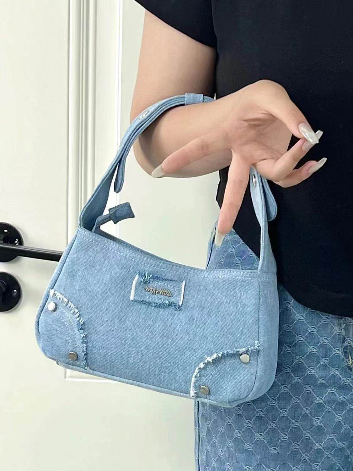 Небольшая брендовая джинсовая сумка подмышку, сумка на одно плечо, летняя портативная небольшая сумка, коллекция 2023