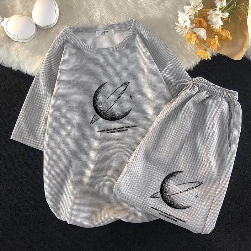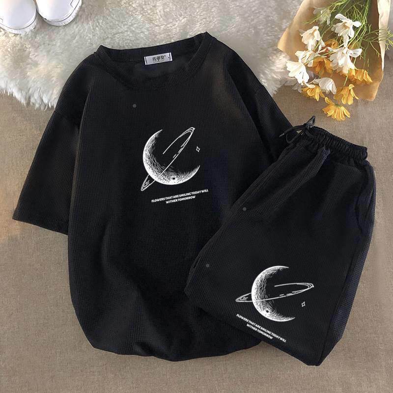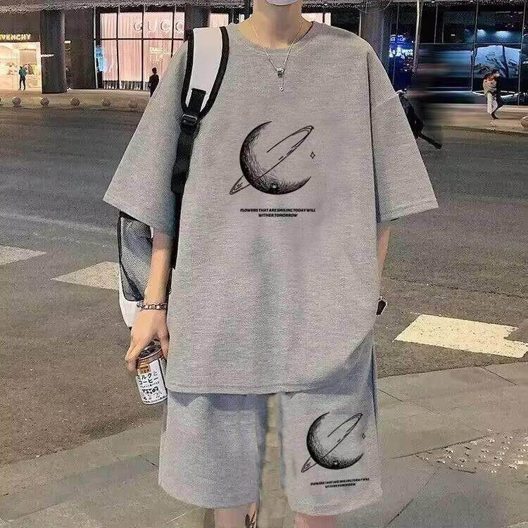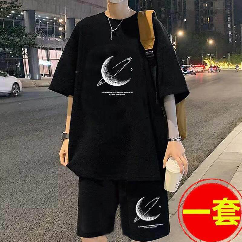 Летний шелковый трендовый комплект для отдыха, футболка, штаны, мужской стиль
