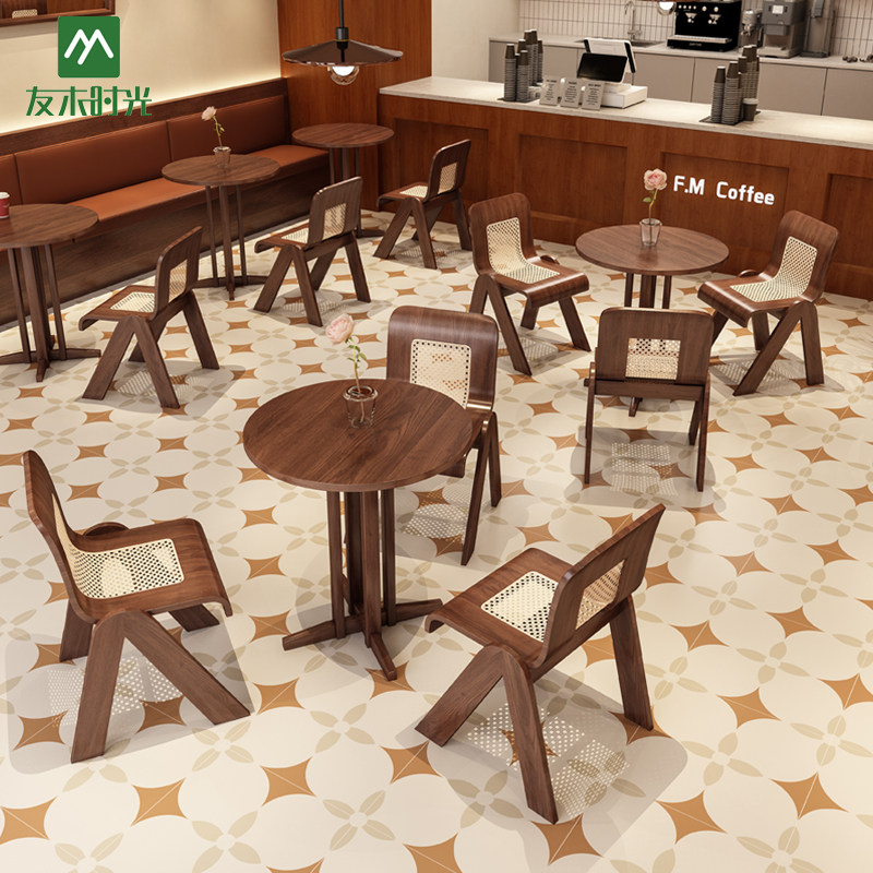Среднекварное кофейное шоу с твердым деревянным столом и стул Комбинированная ретро торт выпекание магазин десерт молочный чай магазин ротан