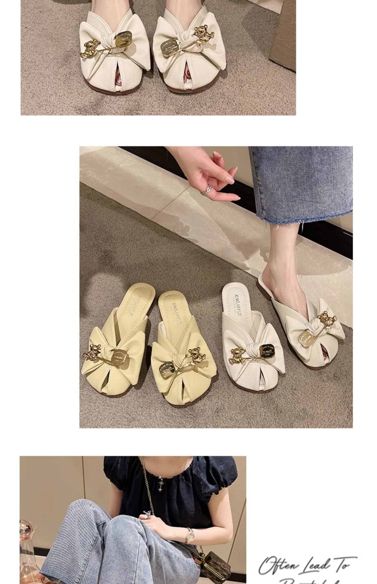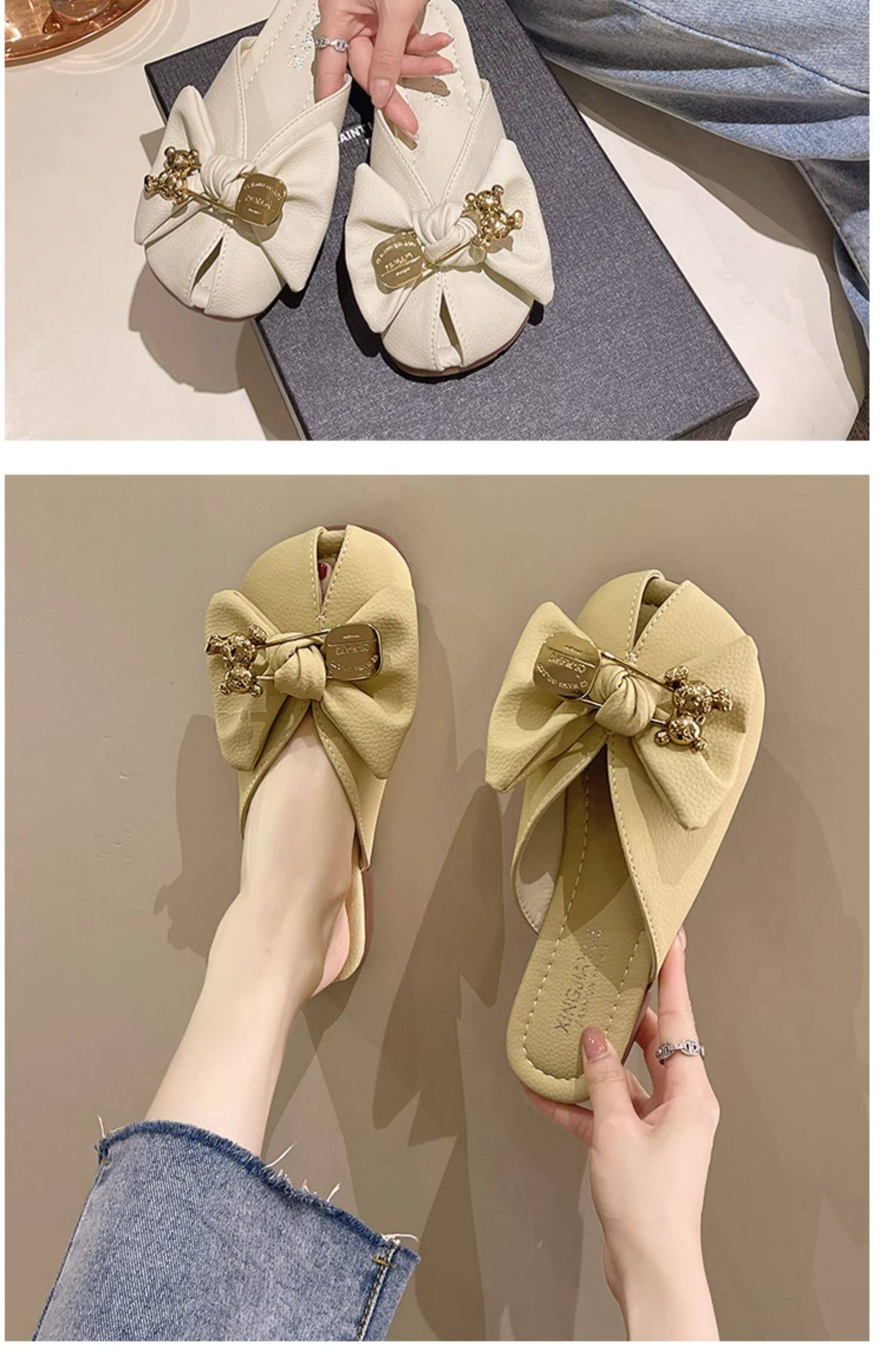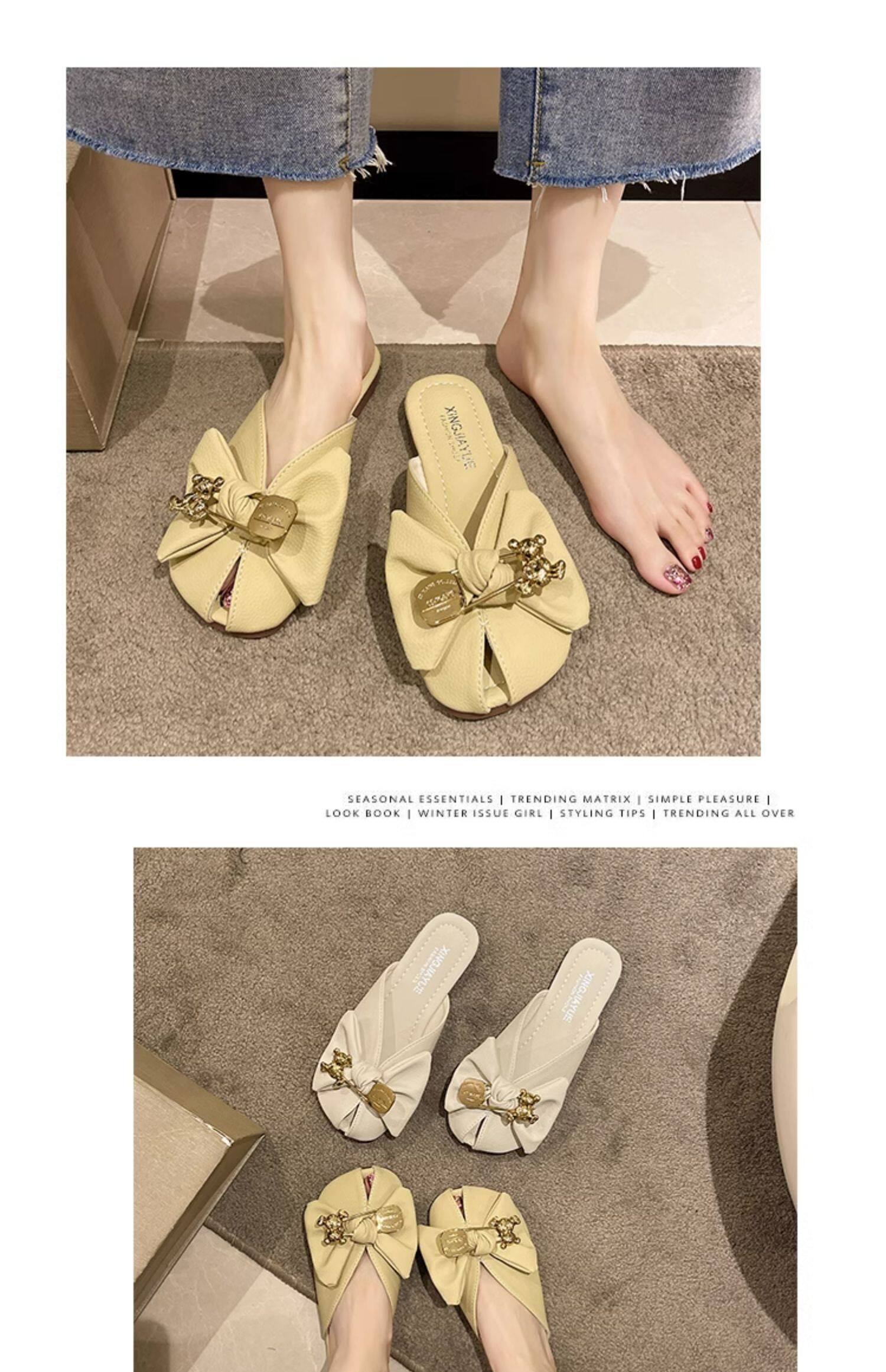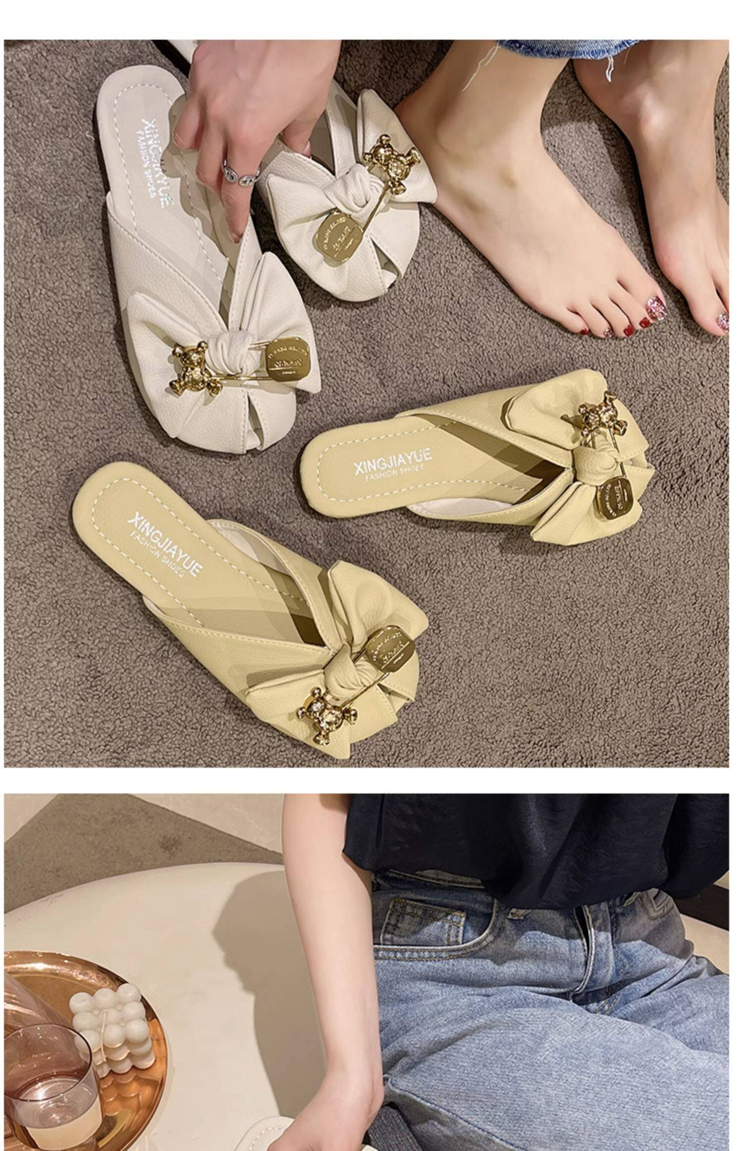 Летние тапочки с бантиком, модная обувь, в корейском стиле, мягкая подошва