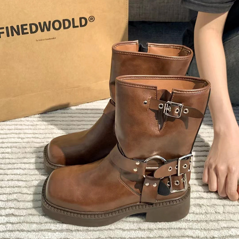 Martens, коричневые джинсовые короткие сапоги на платформе в английском стиле, 2024 года
