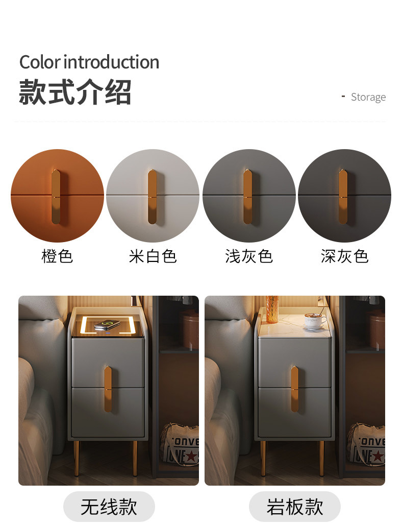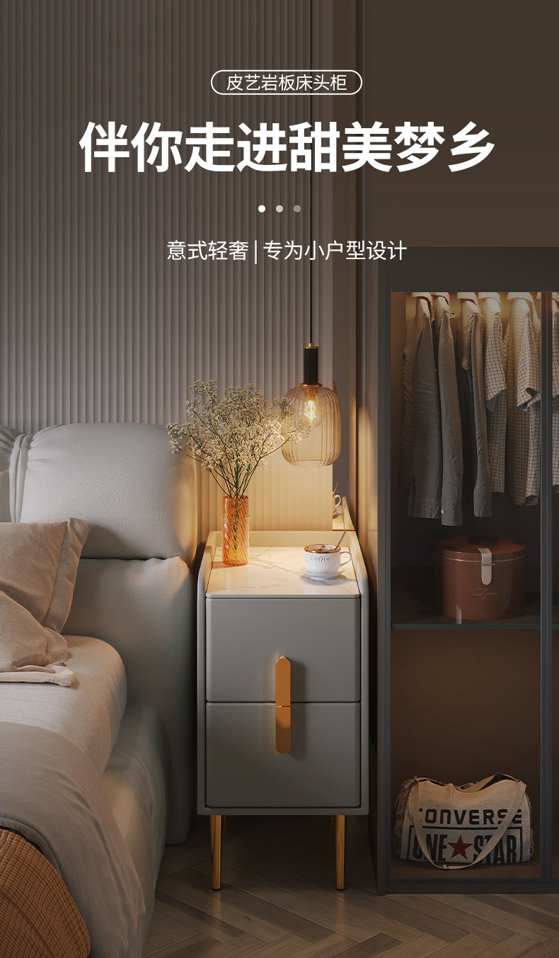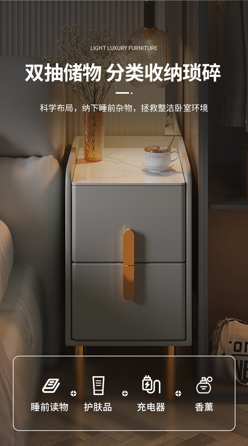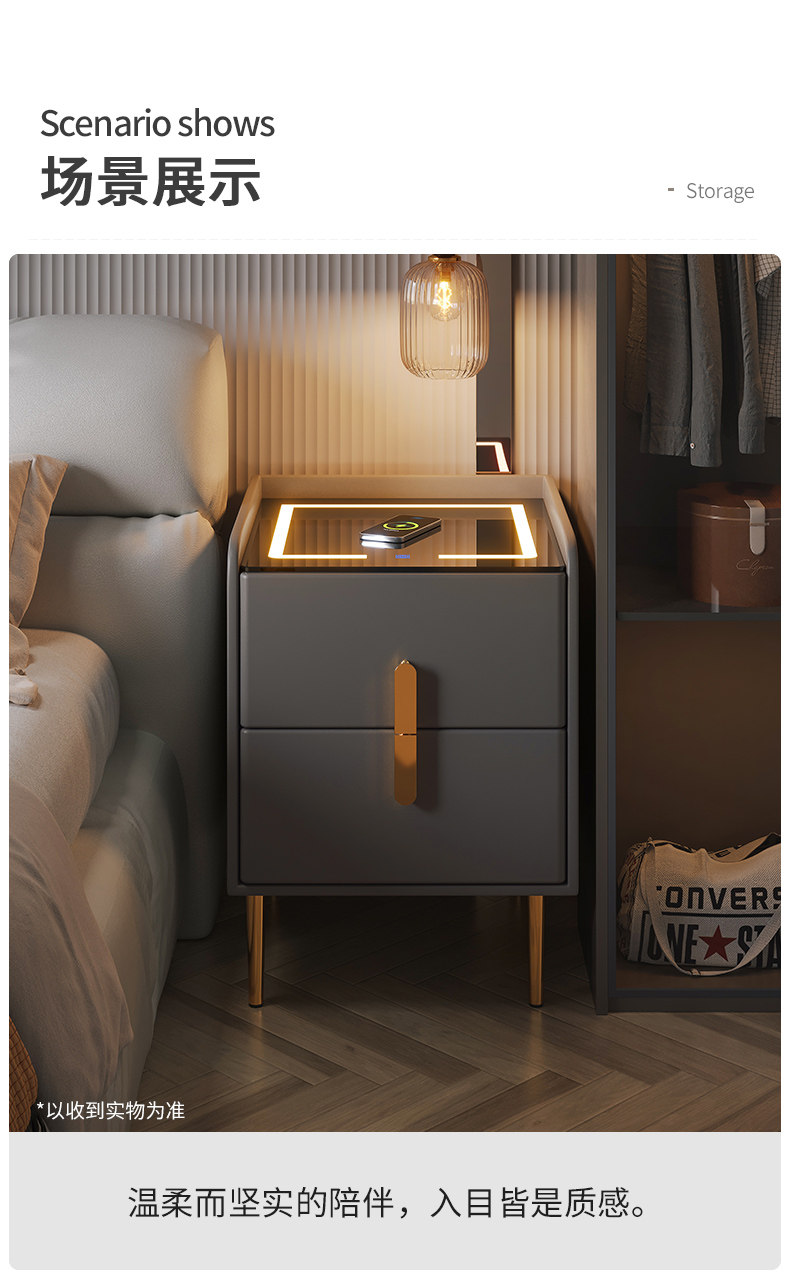Умная прикроватная тумбочка, ультраузкая, с подсветкой, перезаряжаемая, простая, современная, светлая, роскошная спальня, прикроватный шкаф, прикроватный шкаф для хранения вещей