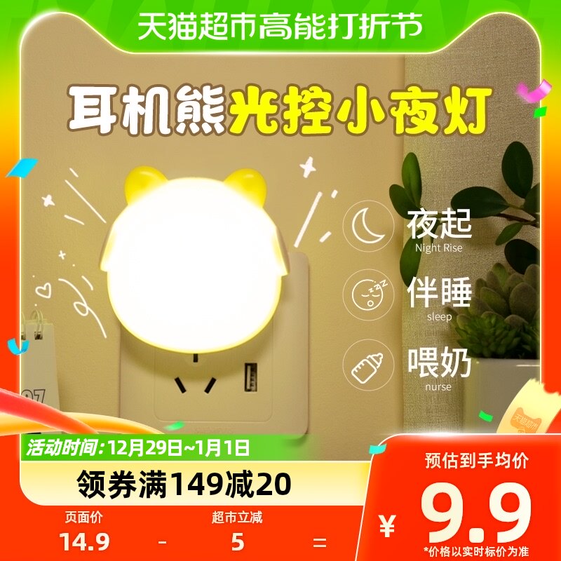 岁艺 Умный индукционный ночник для спальни, светильник для кормящих грудью для кровати, настольная лампа, защита глаз