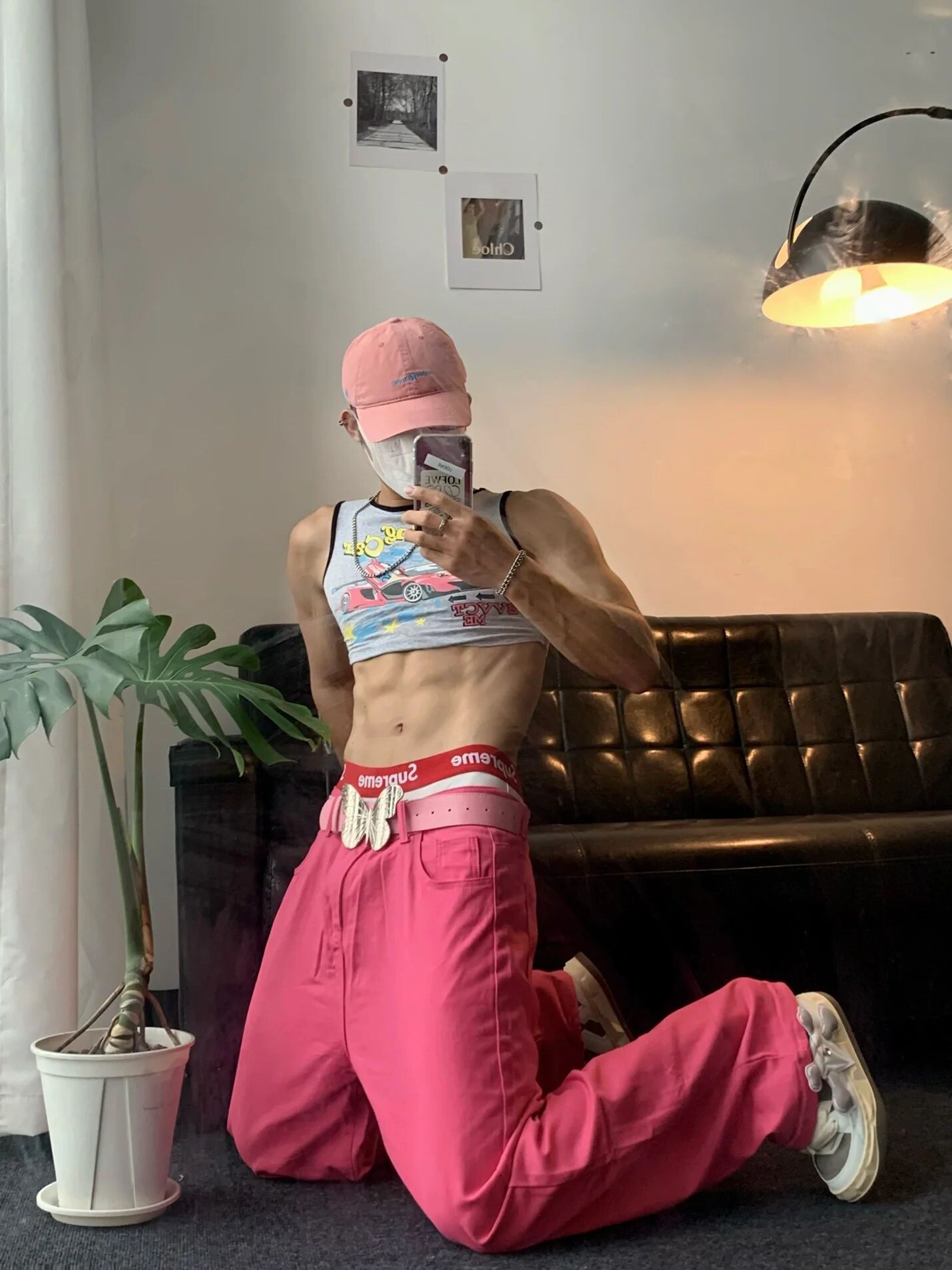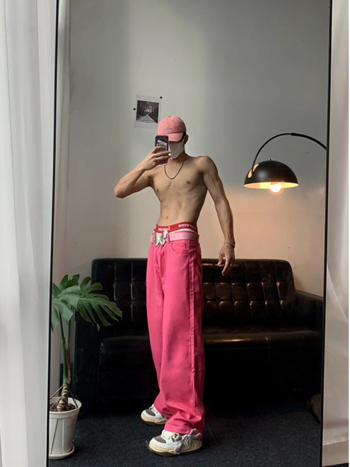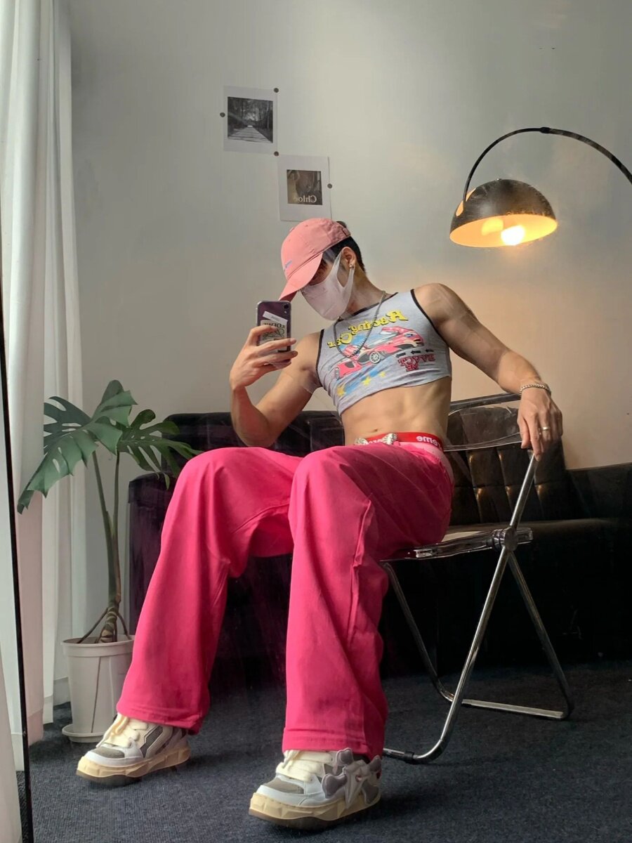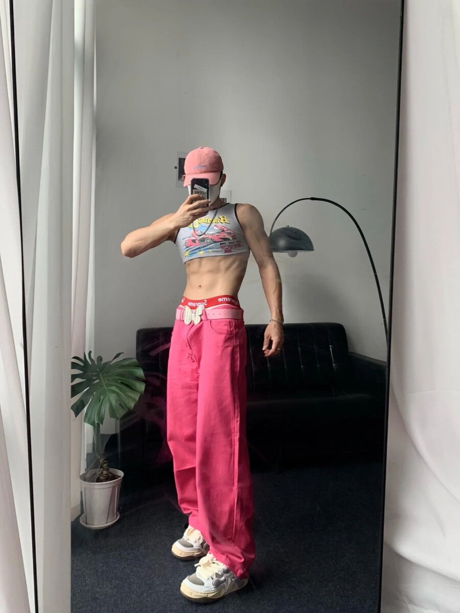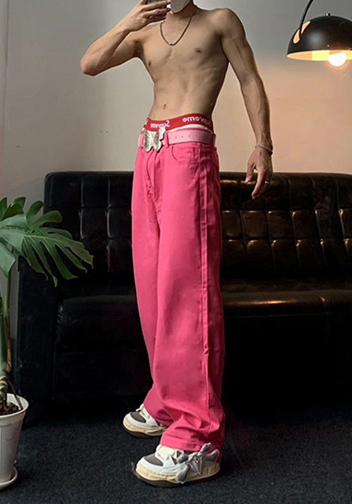Розовые летние штаны, джинсы, в американском стиле, свободный крой