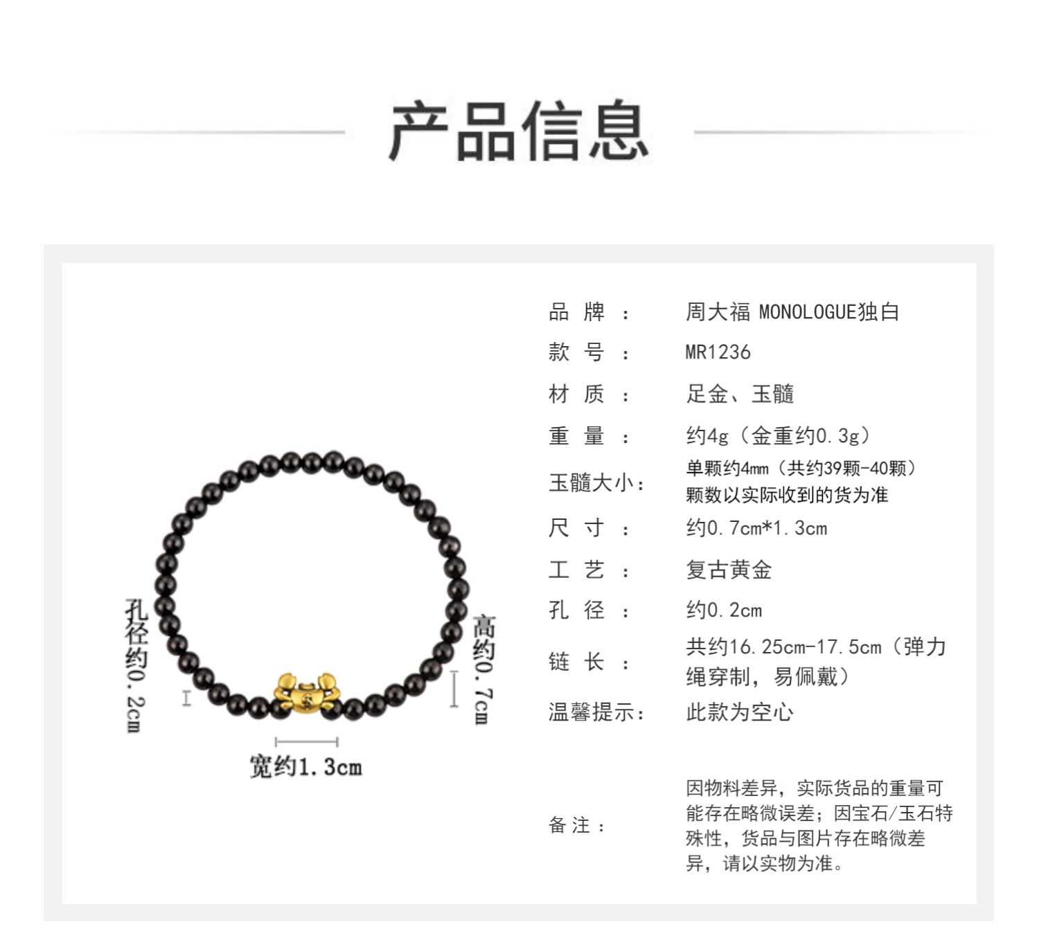 周大福 Власти монолога монолога имеют богатый крабовый золотой браслет Chalcedony MR1236 Подарок для мужчин и женщин