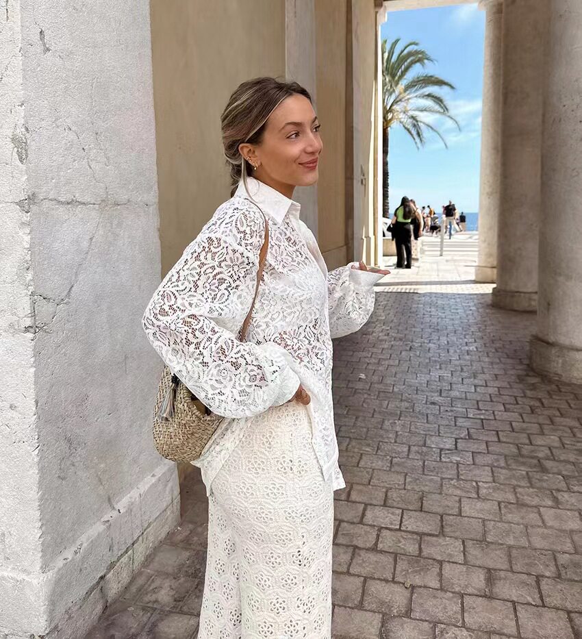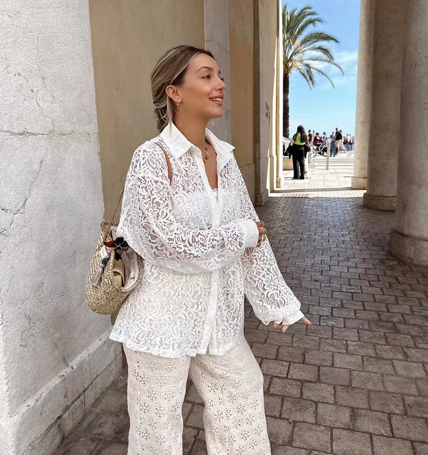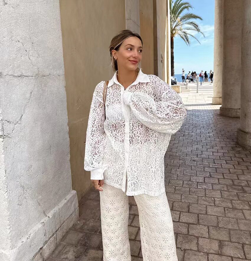 Новый летний французский стиль ветряной кружево свободно и полая рубашка Holow Out File File