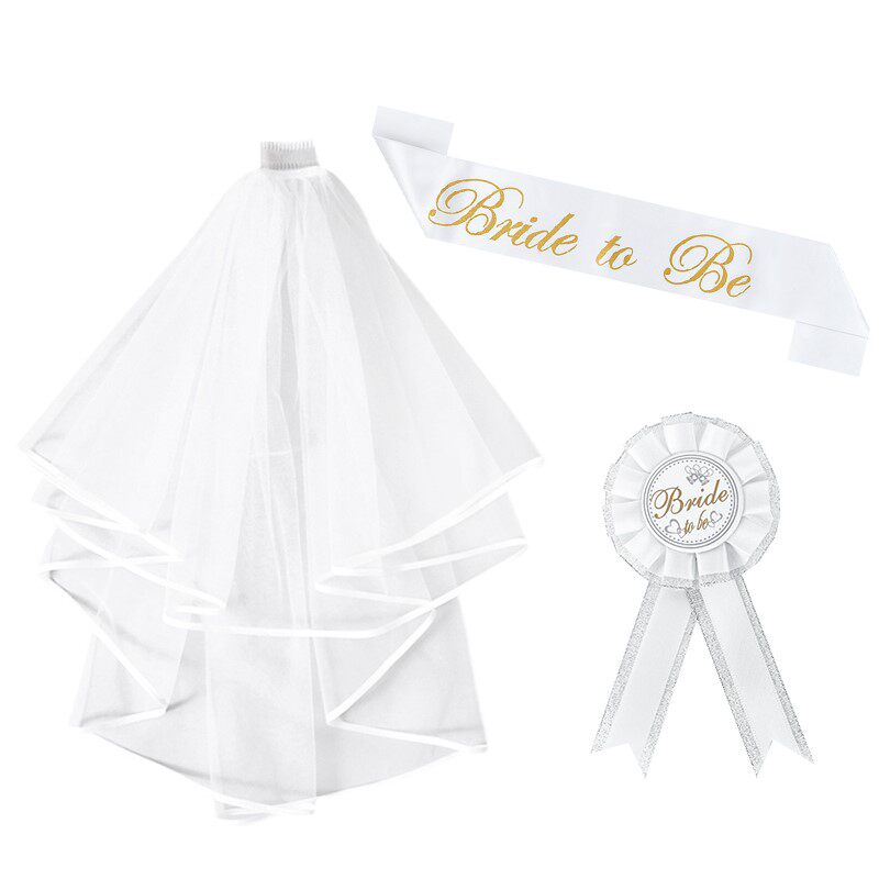 Bachelorette Party Decor Groom Bride To Be Sash Veil Badge f