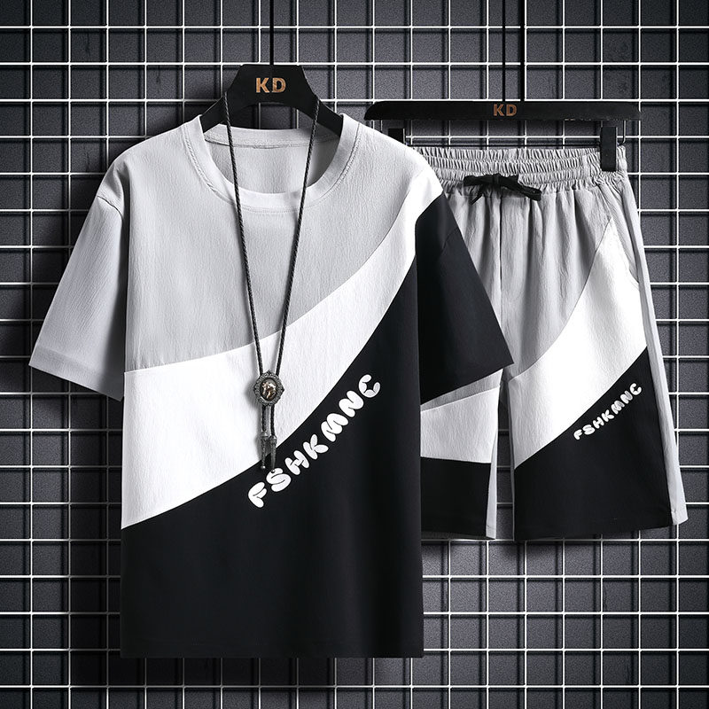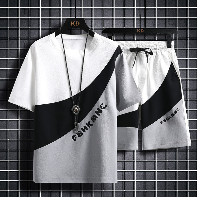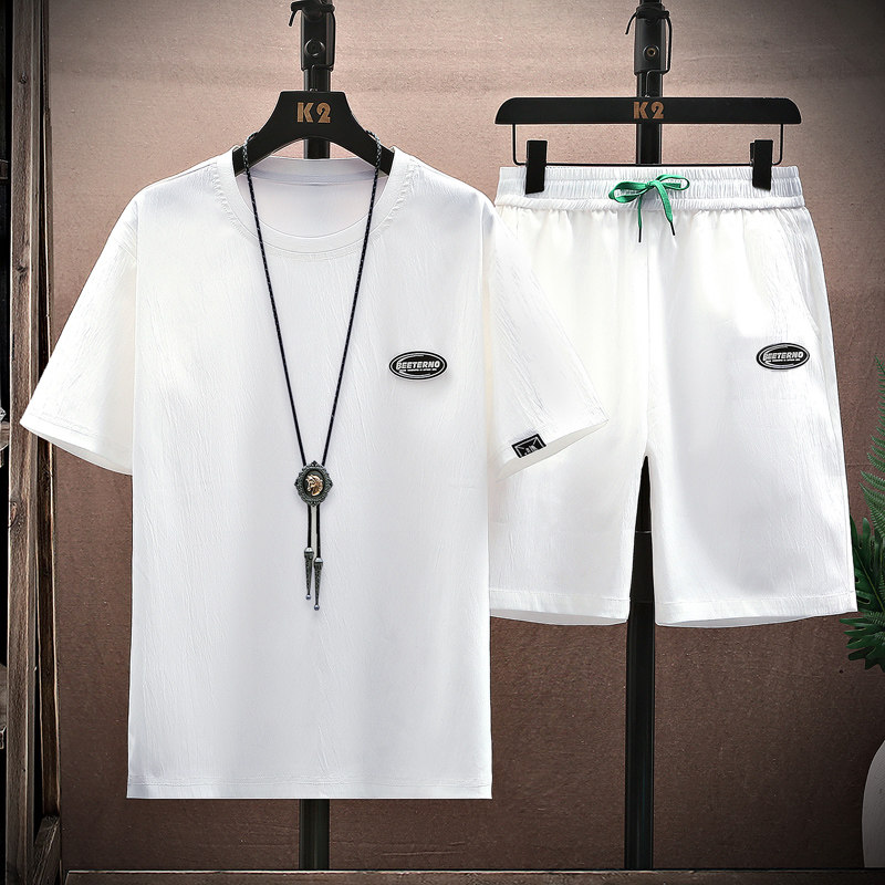 Шелковый спортивный комплект, футболка с коротким рукавом, летняя одежда, шорты, тонкие штаны, подходит для подростков