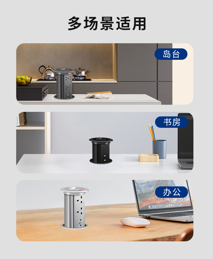 Скрыть лифт -гнездо вставка островного острова Специальная электрическая беспроводная телескопическая плата с пятью отверстиями USB -аудиозарядной зарядки