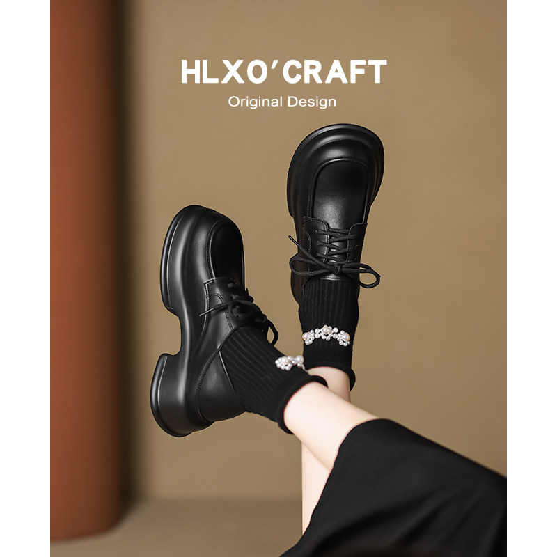 Обувь для кожаной обуви в английском стиле, черные лоферы на платформе, из натуральной кожи, в британском стиле, модель весна/осень 2024 года