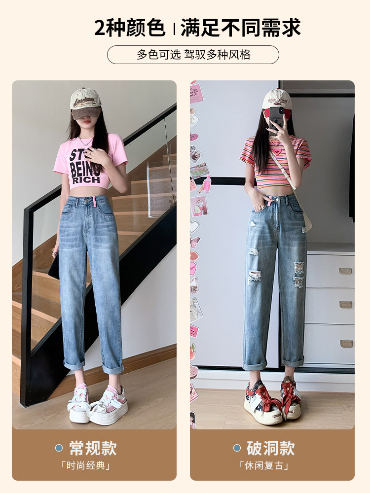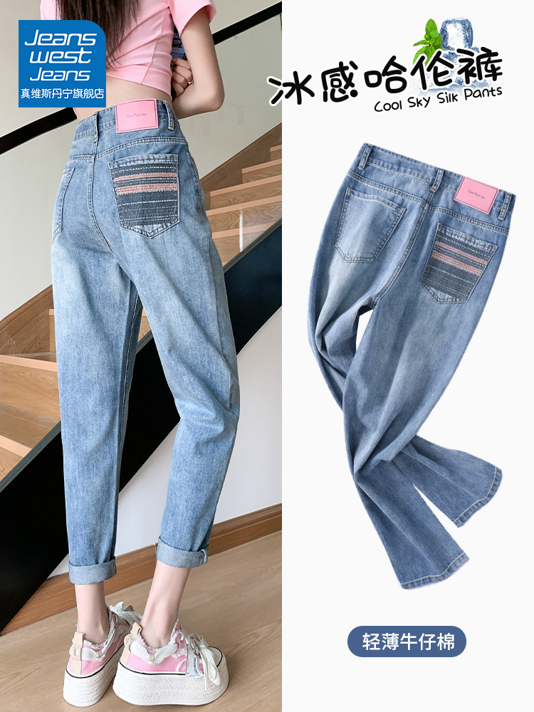 Штаны, летние джинсы, высокая талия, свободный прямой крой, подходит для подростков