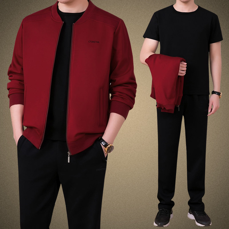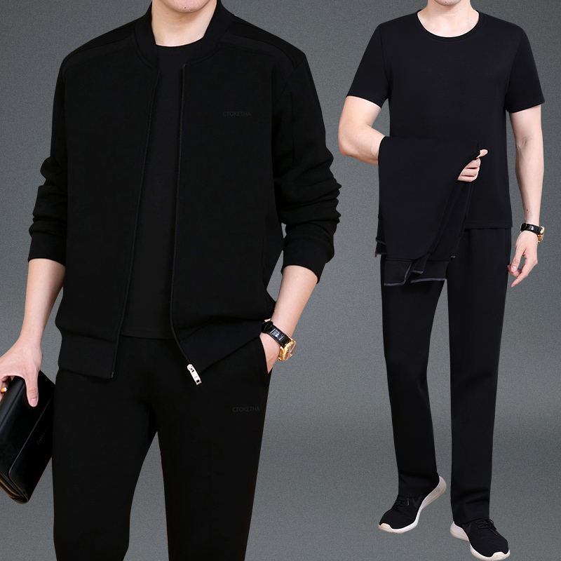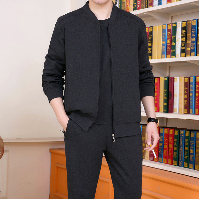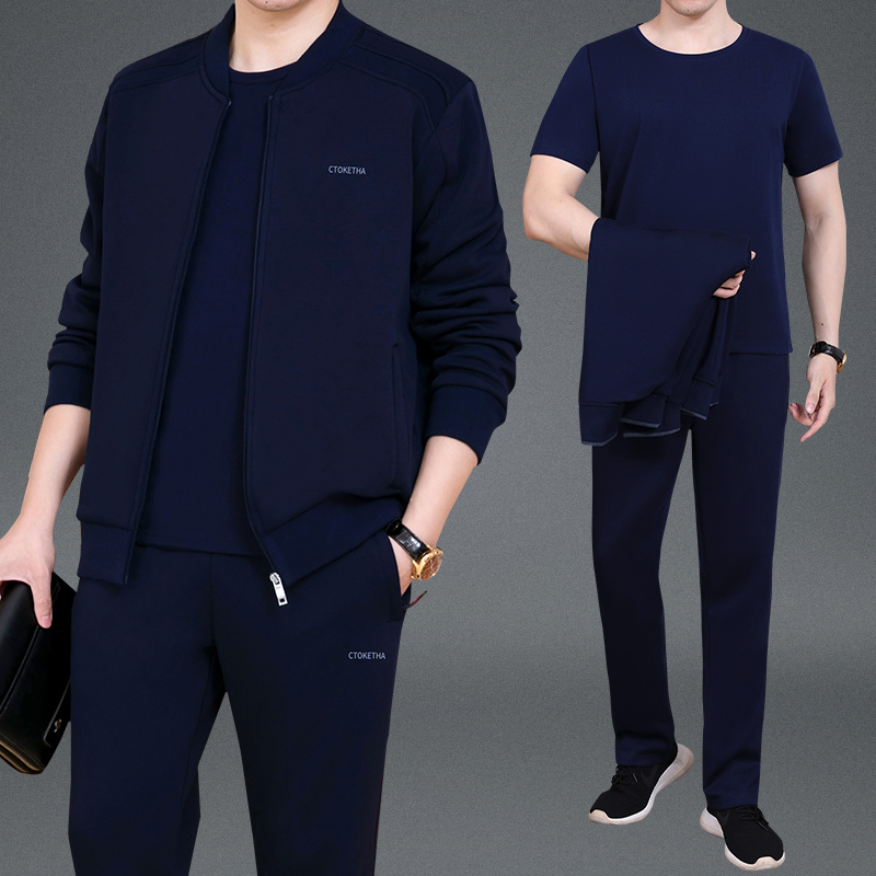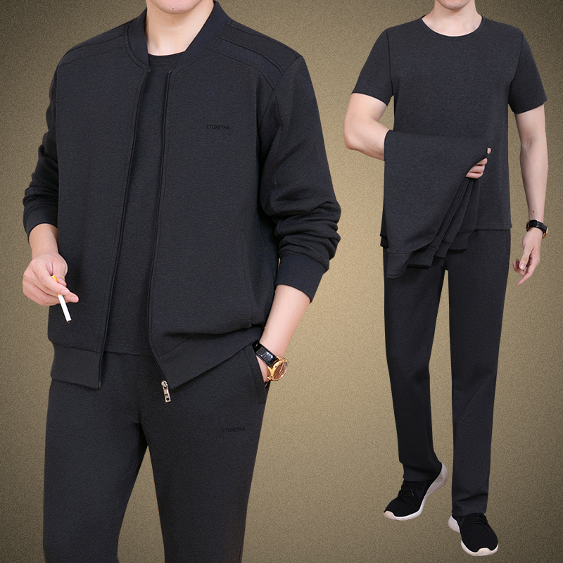 Демисезонный осенний спортивный костюм для пожилых людей, мужской весенний комплект для отдыха, для среднего возраста, 3 предмета